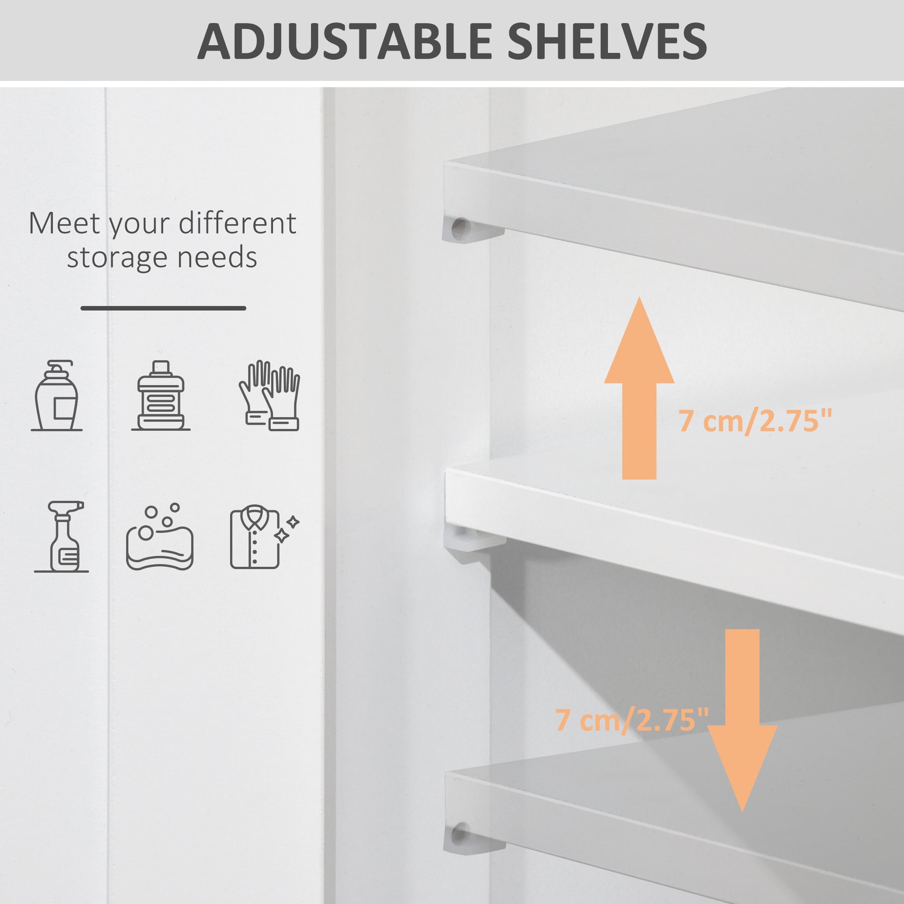 Expand your washroom storage with the kleankin bathroom floor cabinet. Made of MDF with a white paint finish for durability, this storage cabinet ensures long-lasting use. It includes an open compartment, two drawers, and a spacious cabinet with an adjustable shelf to store your bathroom essentials like soaps, towels, and tissues. Versatile in use, it can also function as an entryway storage unit, bookcase, or living room cabinet.