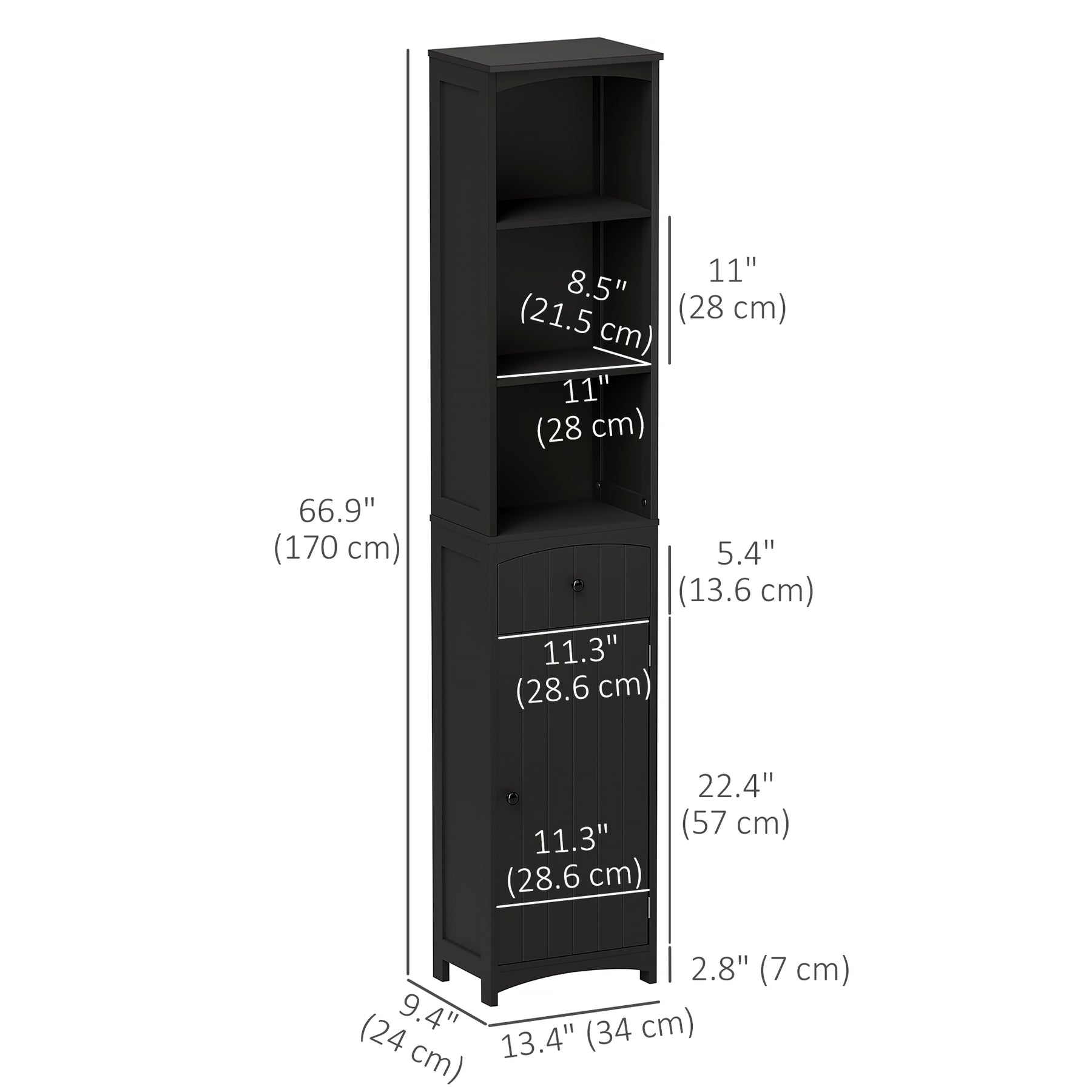 This HOMCOM storage cabinet with doors is an excellent addition to your bathroom area. You can enjoy the ample storage room with the three upper shelves, a middle drawer and a fully closed cabinet at the bottom. With this narrow cabinet, you can reasonably store your bathroom essentials and keep the bathroom clean and tidy. Stylish and functional, it is a great item to enhance your home décor!