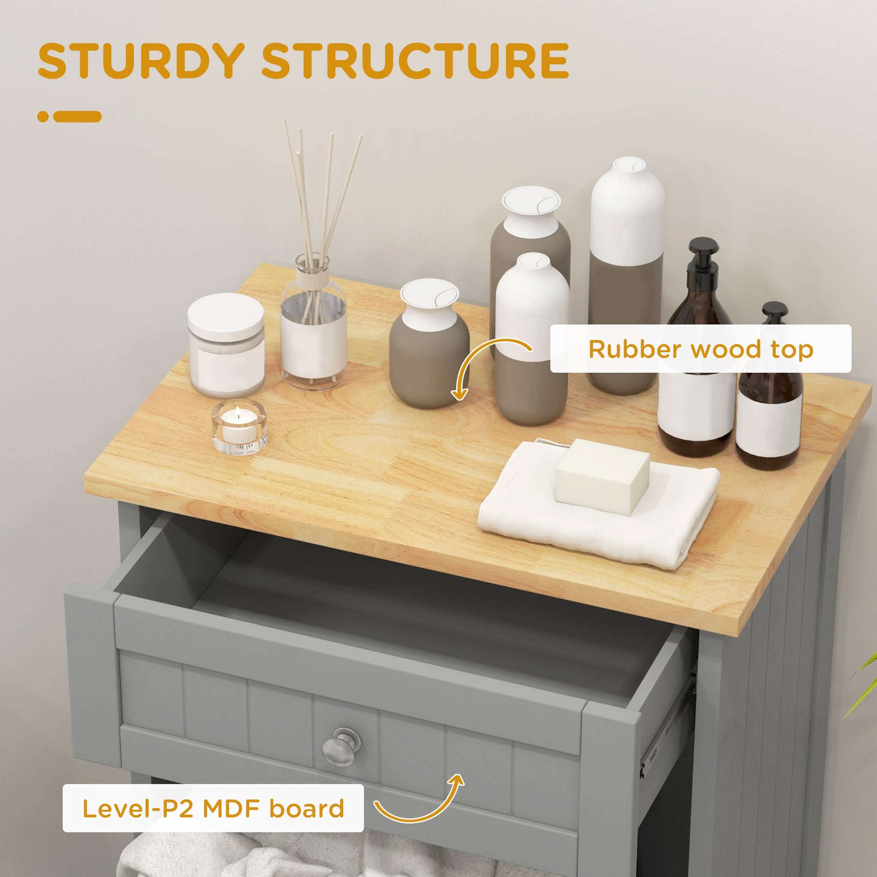 - • Material: MDF, Rubber Wood