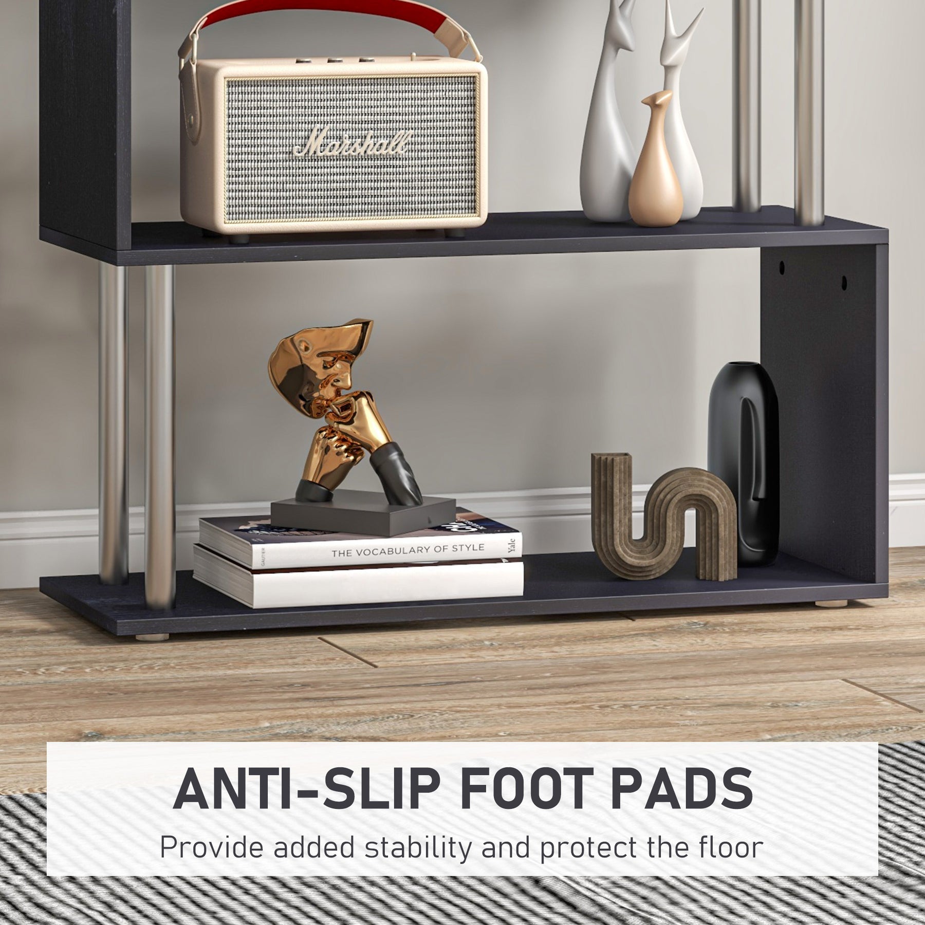 Tired of the same old look? Break away from the norm with the unique and contemporary style of this Z-shape 5 shelf bookcase from HOMCOM. Five shelves of storage make it easy to display your favorite books, photos, collectables and more. Best of all, thanks to an open-back design, it doubles as a bookshelf and room divider.