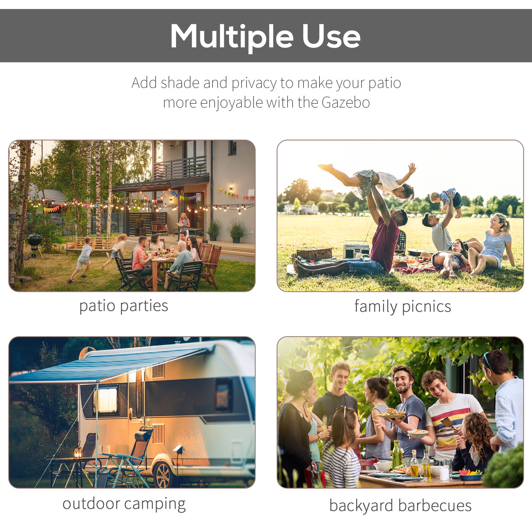 Transform your yard into a functional focal point with this stylish gazebo. The UV-blocking canopy filters sunlight while shielding you from the sun. The extendable front panel adds versatility and the solid steel frame with weather-resistant polyester ensures lasting enjoyment. Relax and unwind under the shaded cover—outdoor living is made easy with Outsunny!