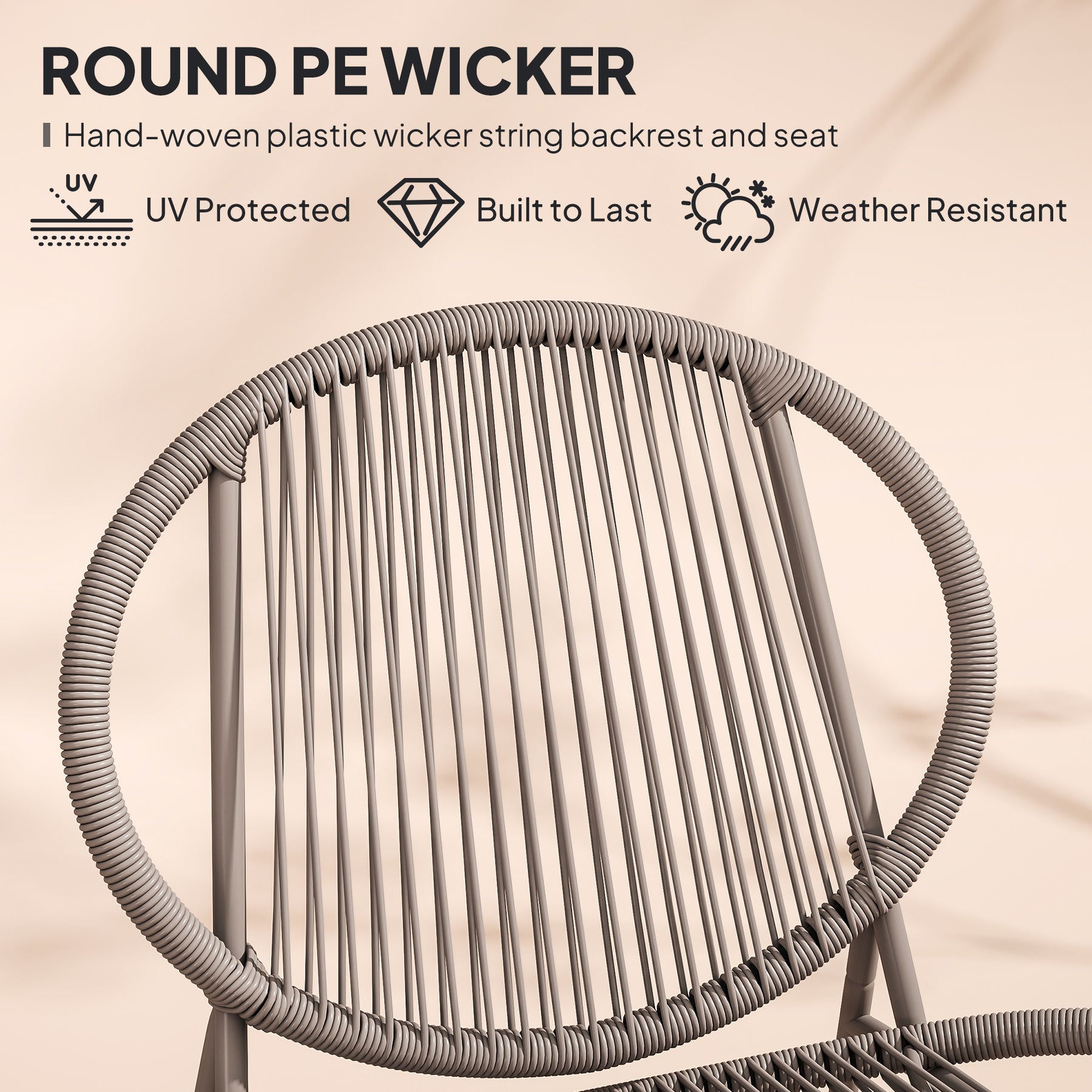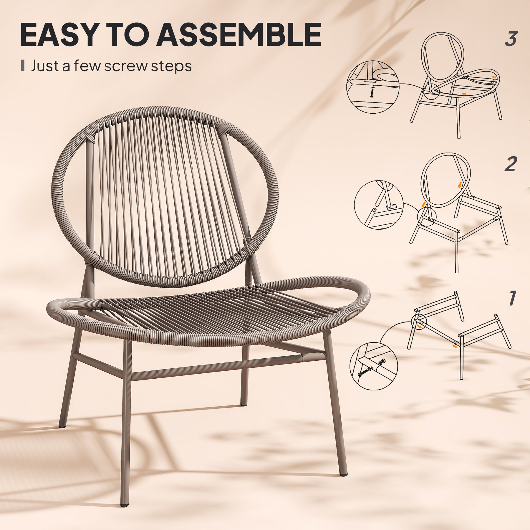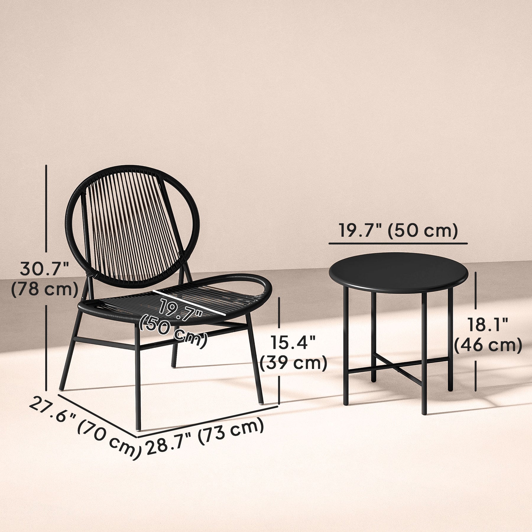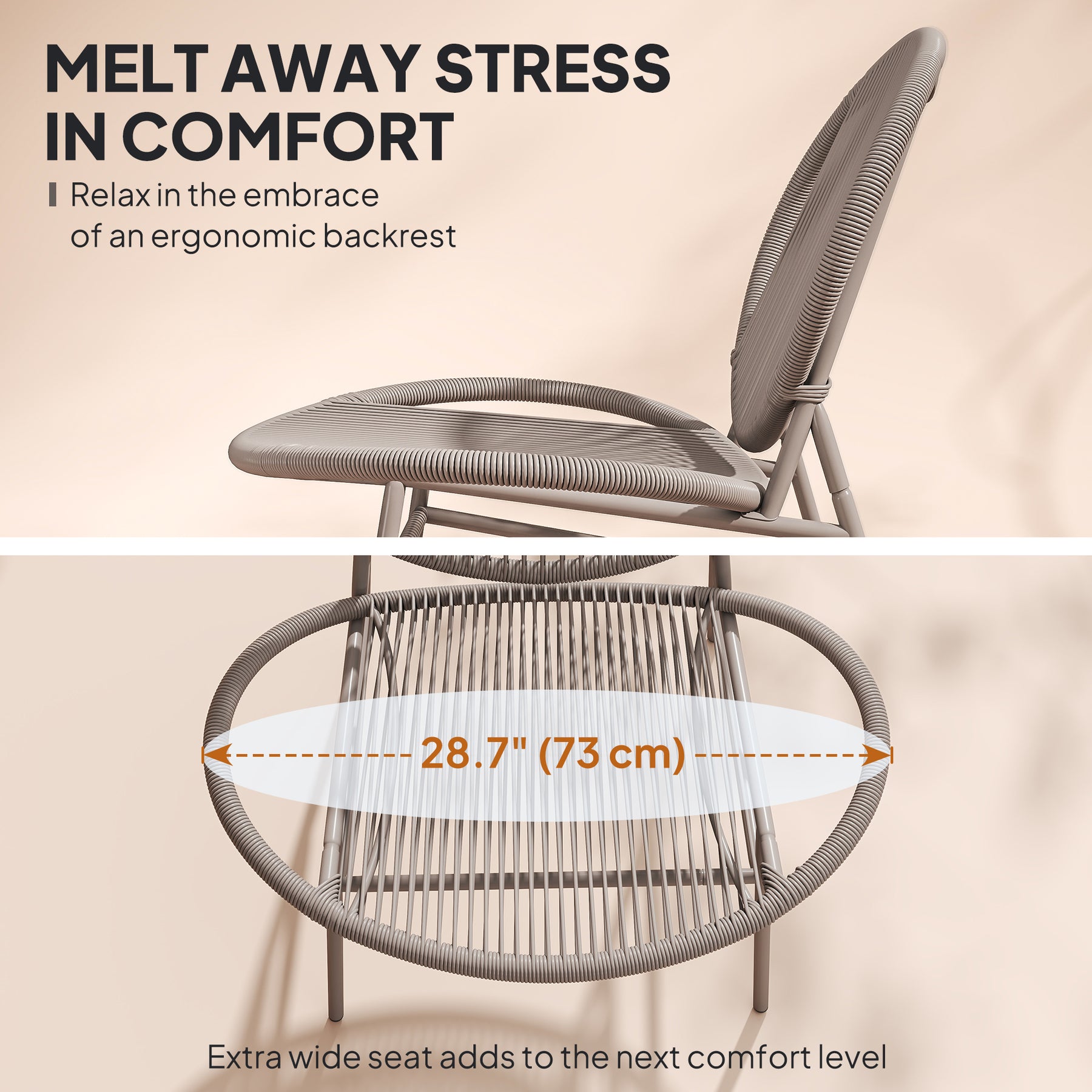 Relax, share a drink and have a chat with Outsunny's outdoor bistro set, including two shell-like chairs and a round steel-top coffee table. The powder coated steel frames offer a strong core to all patio table and chairs, wrapped in protective round plastic wicker - a stylish outdoor patio set for your porch or balcony. 110° sloping backrest and extra wide seat make this patio conversation set a cozy corner for relaxing. Acapulco-like string weaving adds bistro vibes to your outdoor style.