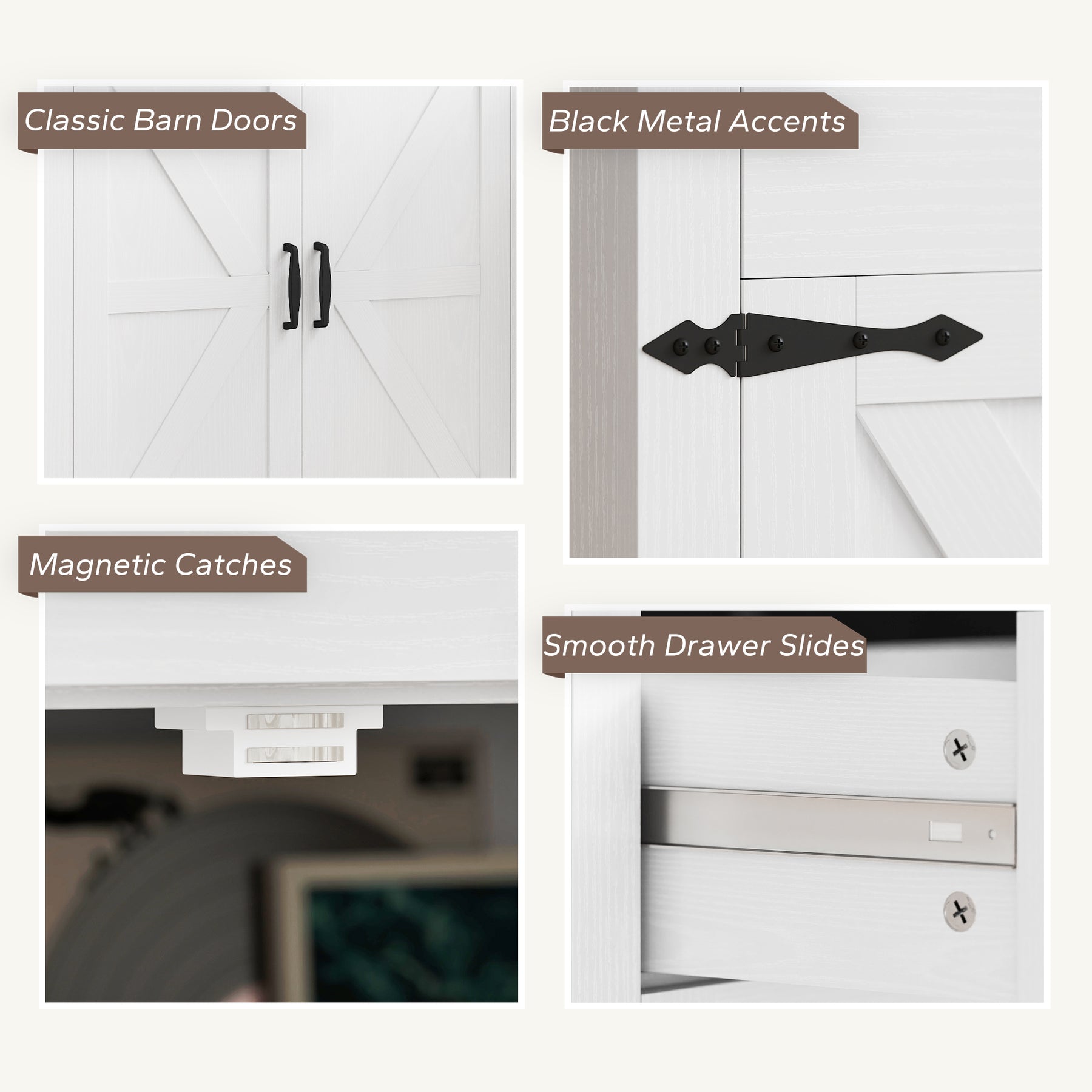 Transform the dining room with HOMCOM sideboard, your great companion for modern living. Charge devices easily at the built-in charging station, display coffee essentials on the spacious countertop, tuck away accessories in two drawers and store small appliances in two cabinets. Anti-tip kits ensure stability, protecting against accidental tipping. This storage cabinet with doors marries farmhouse charm with functional design, making it a versatile piece for kitchen, entryway or living area.