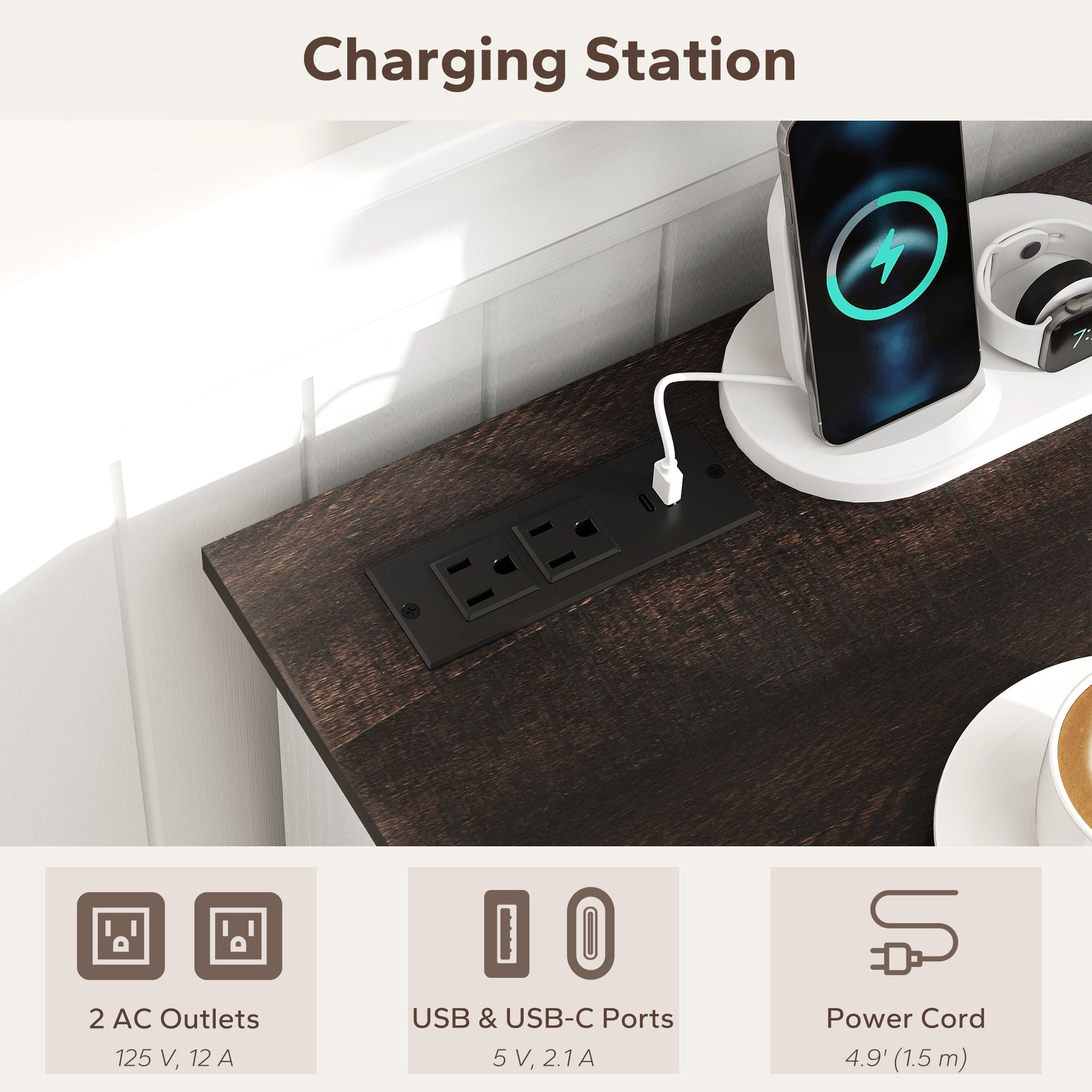 - • Charging station includes two AC outlets, a USB and a USB-C port, with a back hole to manage wires effectively