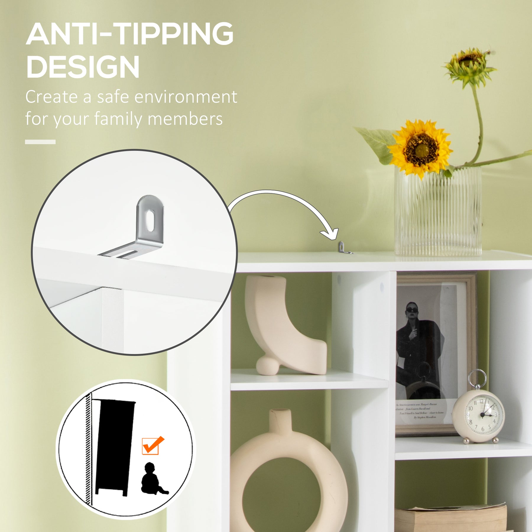 - • Anti-toppling design prevents the bookcase from falling forwards