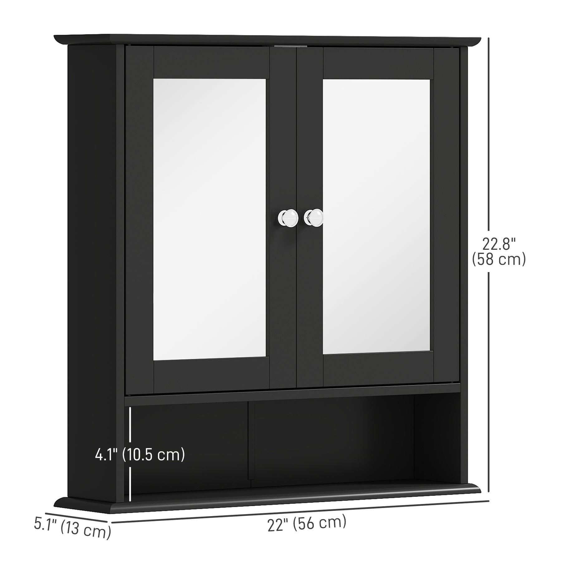 Creating a stylish storage option has never been so easy! This bathroom mirror cabinet from kleankin fits nicely with any decor and can be used in the kitchen, garage, or bathroom to create stylish additional storage. It is constructed of solid MDF and has a bottom shelf and a 2-tier cabinet with mirrored doors. The bathroom mirror with storage provides a spacious open area for your medicine, toothbrush, cups, or bottles, making it more convenient for any indoor space.