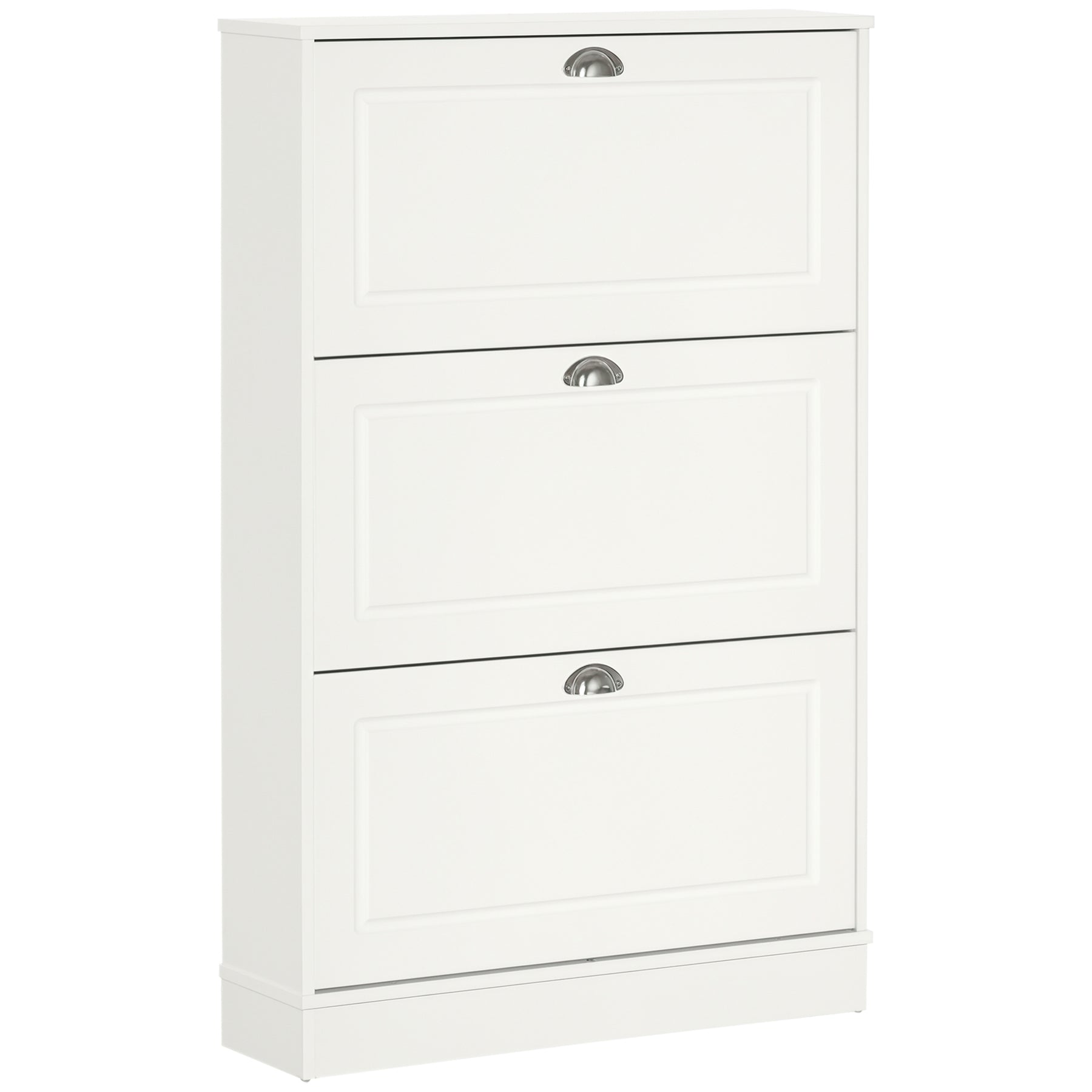 Do you have too many shoes and are concerned about not having enough space to store your favourite footwear? It's time to get your shoes organised with our HOMCOM shoe cabinet for entryway. It has three drawers and a countertop for storing shoes, photo albums, plants, and other items. The stylish and modern design will complement any room's decor. The anti-toppling design at the back of the cabinet adds security. This spacious shoe cabinet is great for storing your shoes and accessories.