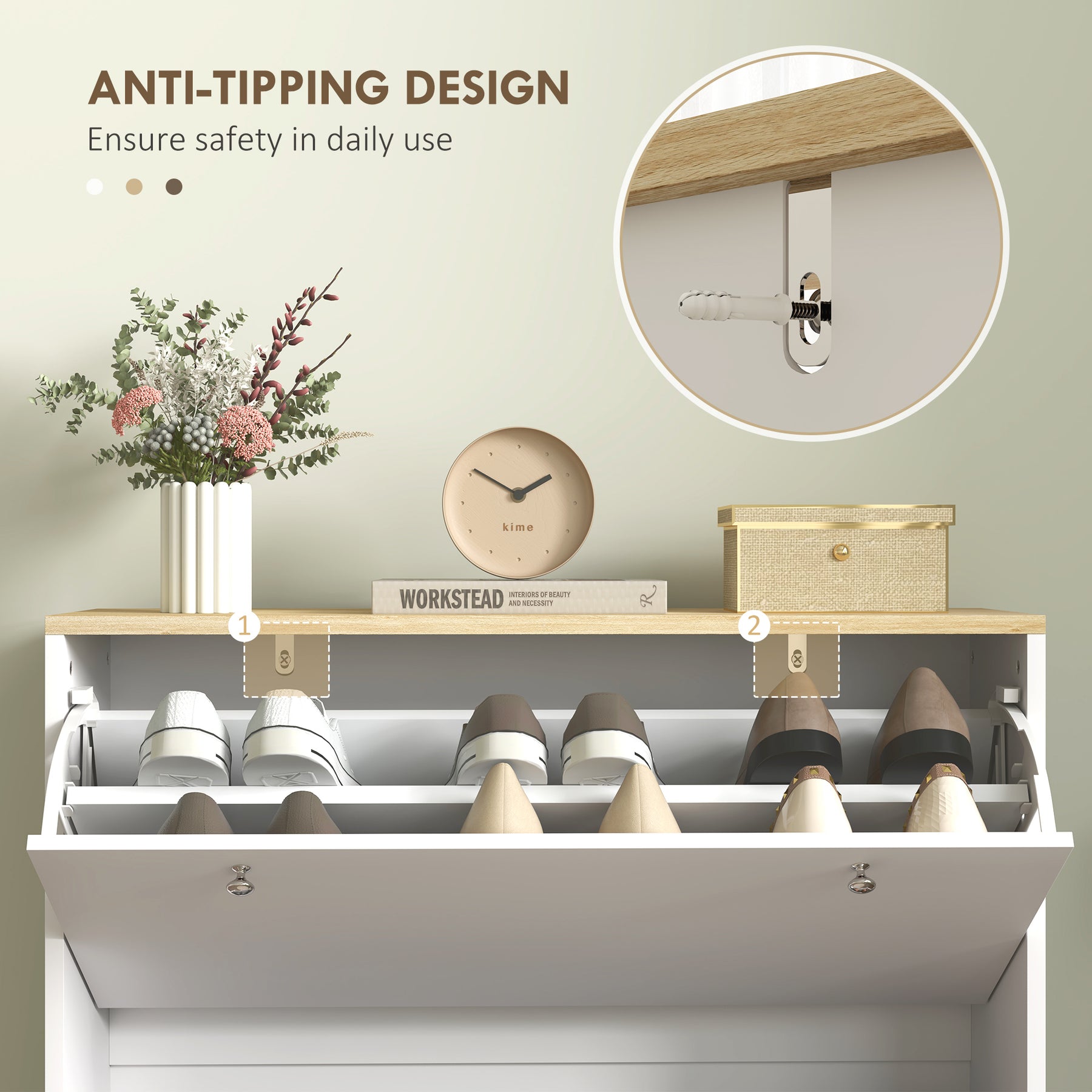 Tuck away your footwear in style with the HOMCOM entryway cabinet. Keep up to 16 pairs neatly organized in dual flip drawers, and adjust the two-level shelves to fit boots to flats seamlessly. The sleek tabletop of this slim shoe cabinet adds a chic touch to any entryway while ensuring your space stays clutter-free.