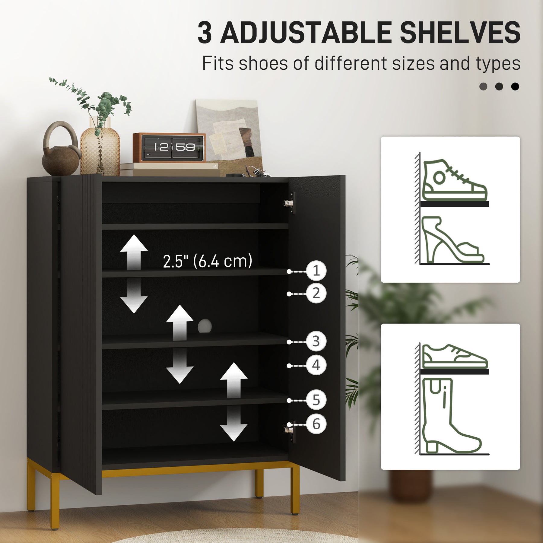 Wave goodbye to cluttered entryways with the HOMCOM shoe organiser! Designed to hold 15-20 pairs of shoes, this slim shoe cabinet keeps your space tidy. Enjoy the gentle close of cushioned hinges and show off your decor on its sleek tabletop. With steel legs and adjustable foot pads, this entryway shoe storage cabinet marries style with stability, ensuring your foyer is both elegant and organized.