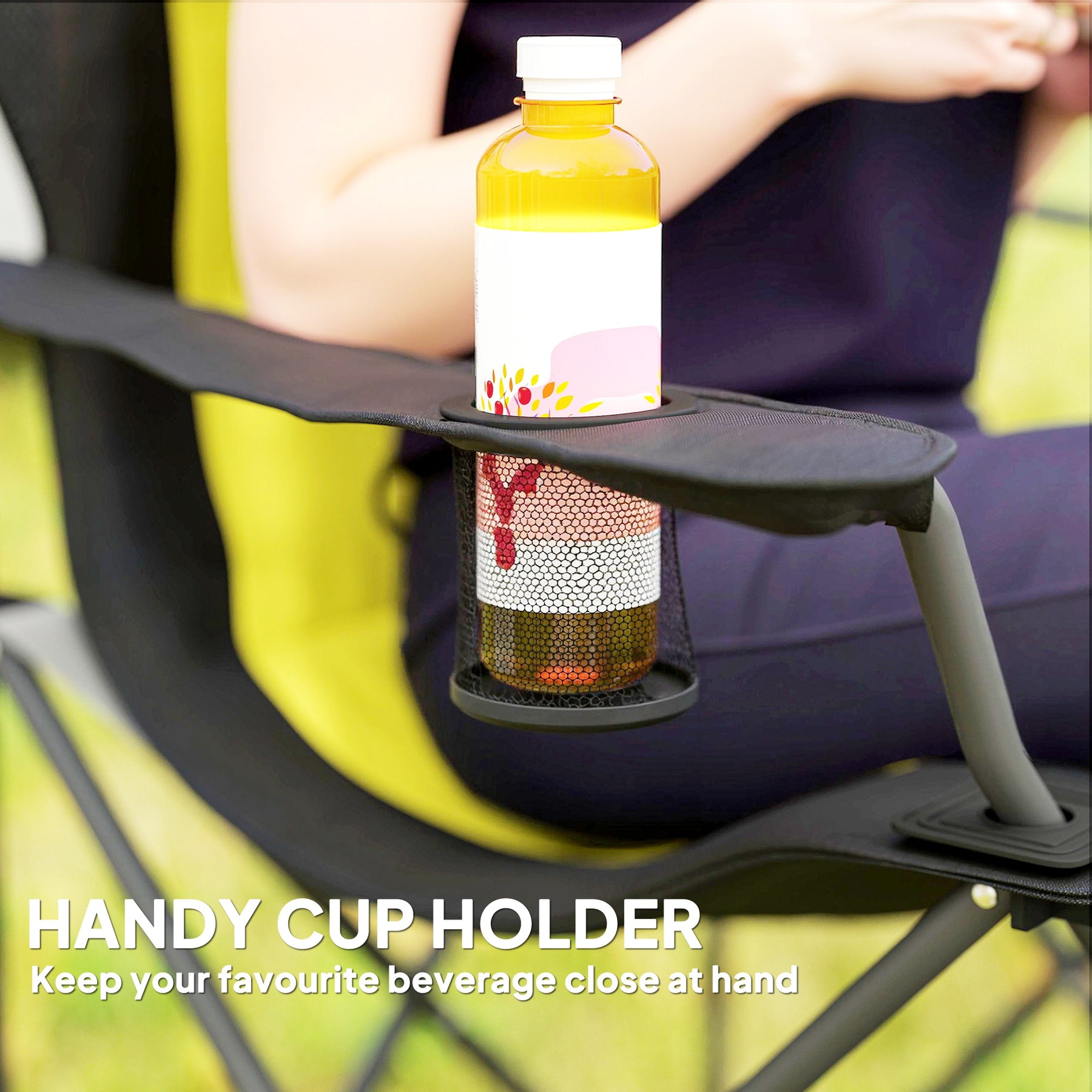 Enjoy superior comfort with the Outsunny outdoor chairs, designed with a 24.4" (62 cm) high backrest to alleviate aches and pains. Crafted from splash-resistant 600D Oxford fabric, our folding chairs keep you cushioned while a built-in cup holder keeps your drink handy. They are excellent for any outdoor setting, whether as beach chairs, lawn chairs, or camp chairs.