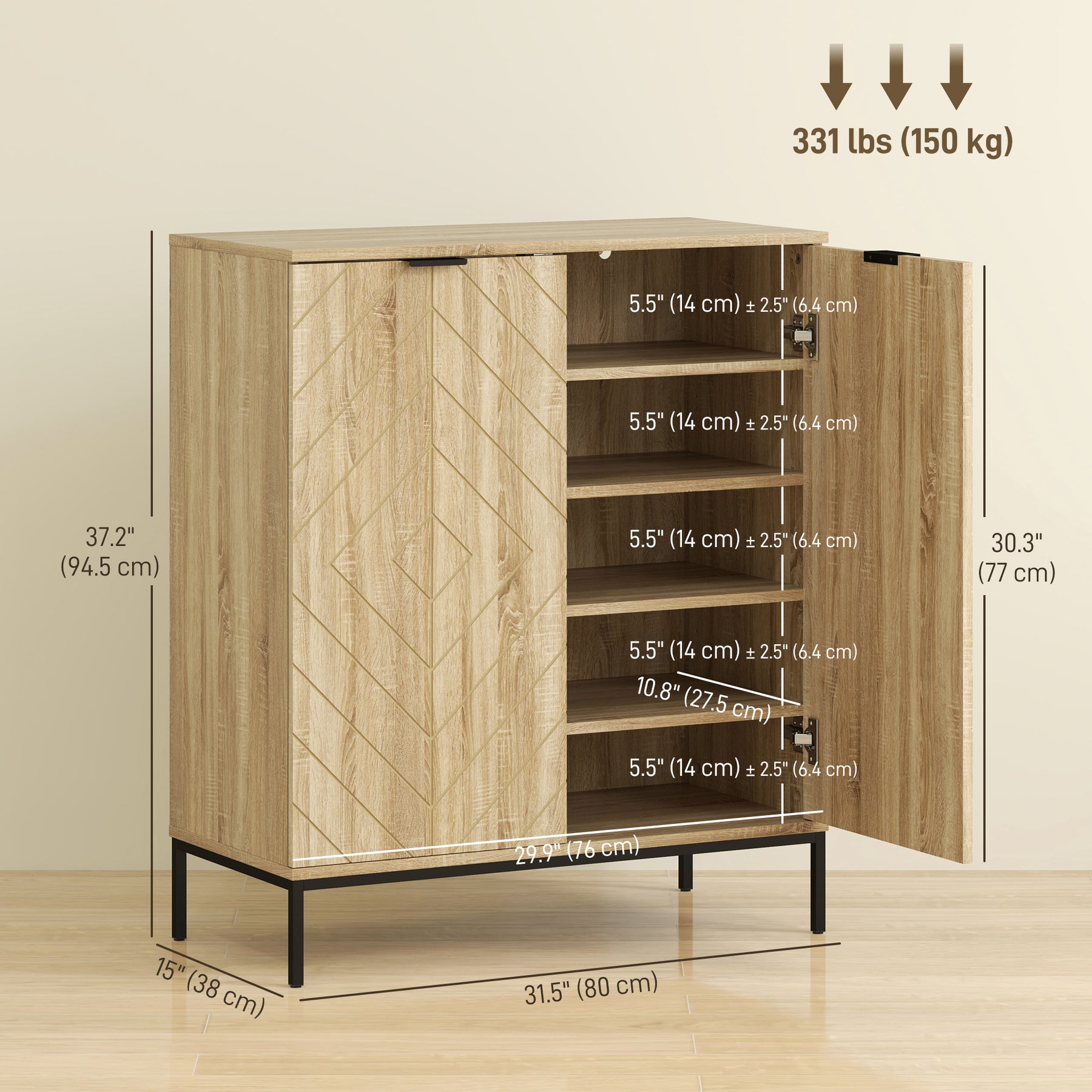 Tired of tripping over scattered shoes? The HOMCOM shoe cabinet brings order to your entryway with 5 tiers and 3 adjustable shelves, holding up to 15 pairs. The shoe rack cabinet features anti-tip hardware that ensures safety, while the modern design blends seamlessly into any space—great for entryways, living rooms, dorms, or garages.