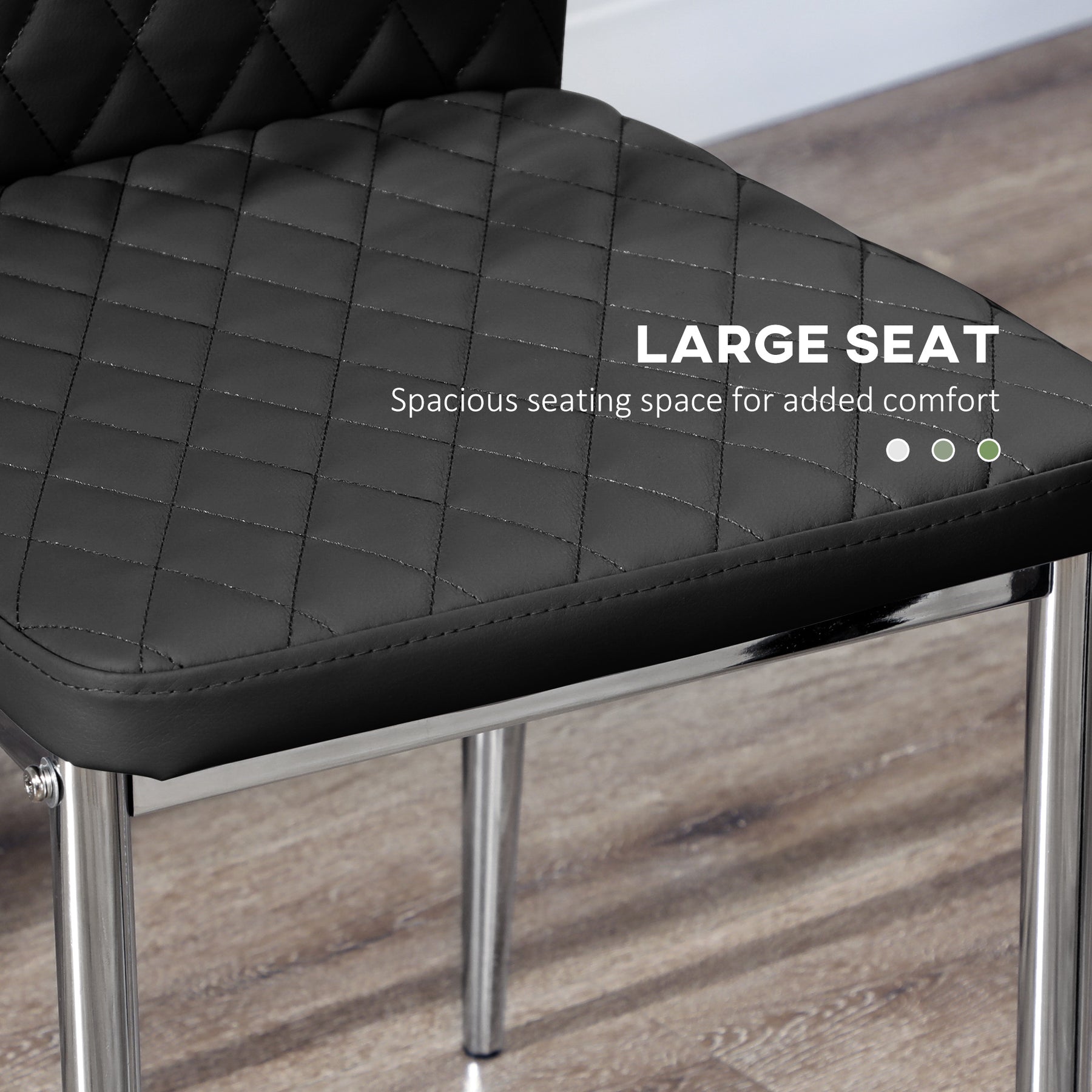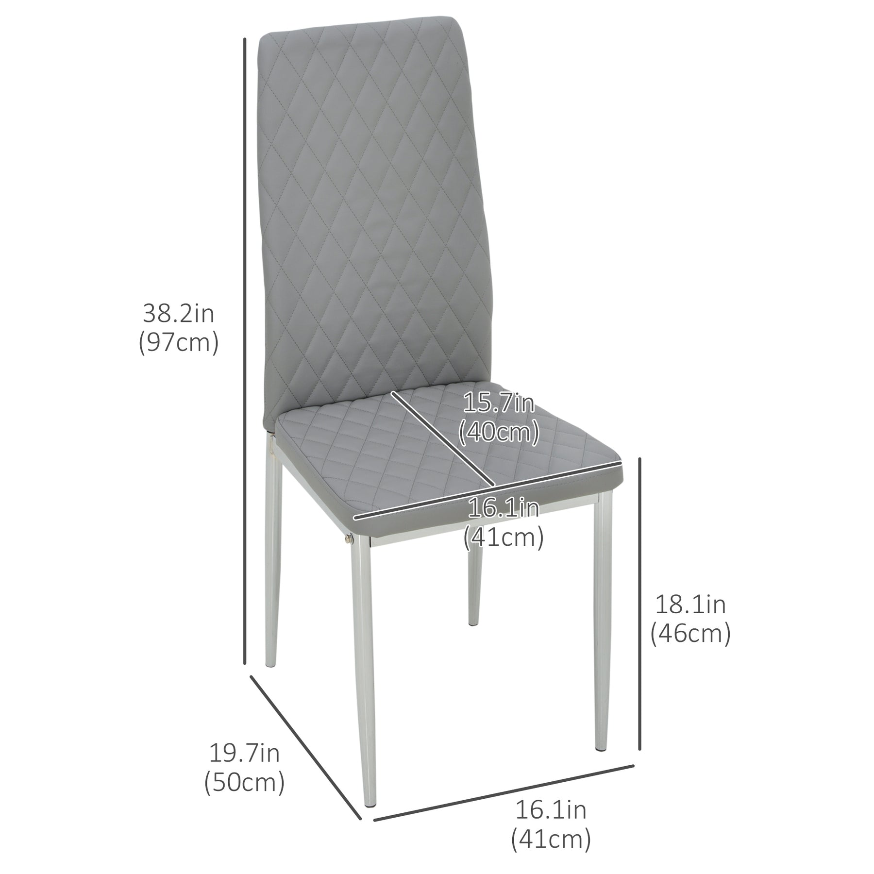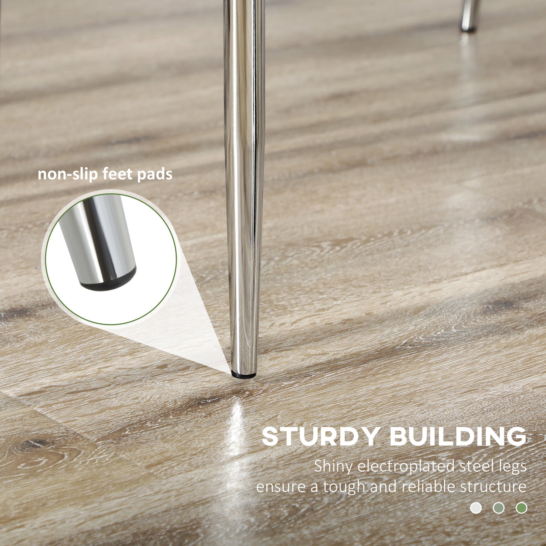 Renew your home with these modern HOMCOM dining chairs! Use these chairs as stylish additions to the dining room or accent pieces in the bedroom, living room, or elsewhere. Sit back and relax in your padded seat with a high back. This modern dining chair set has solid steel legs to stabilize the seat in daily use.