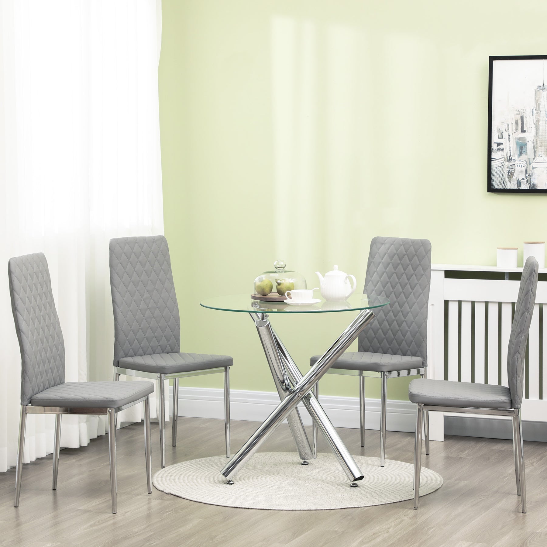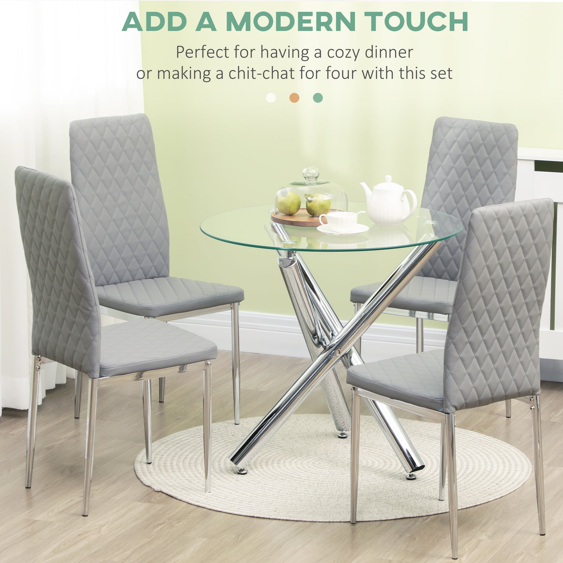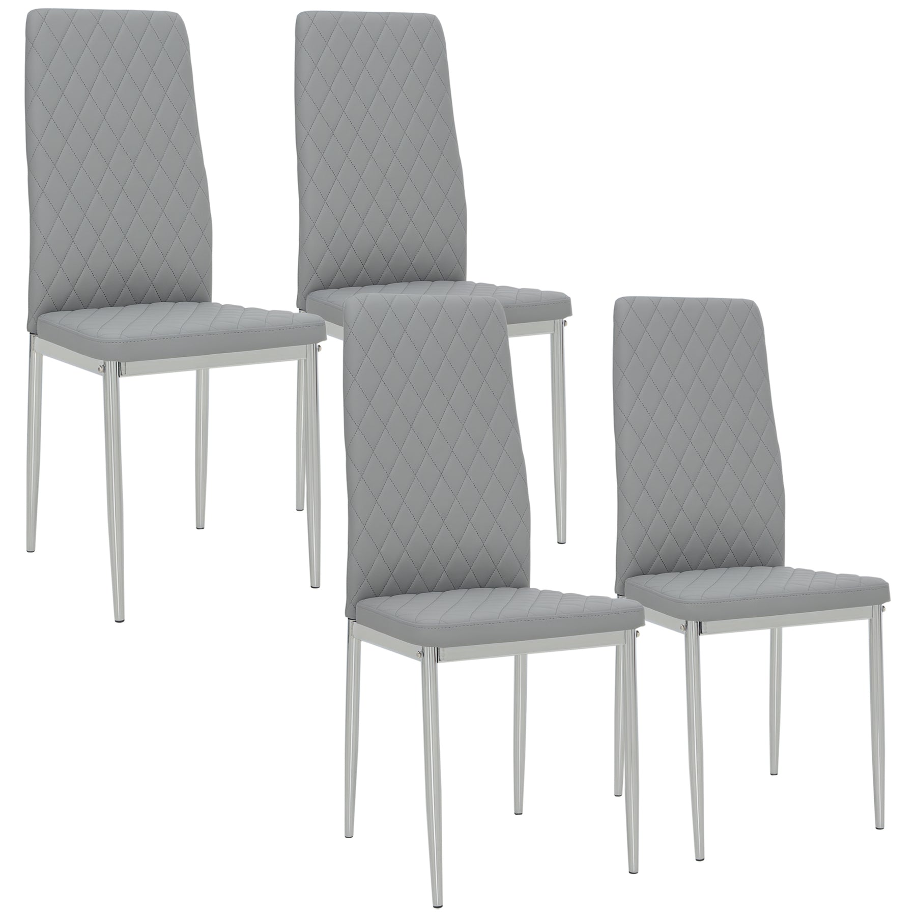 Renew your home with these modern HOMCOM dining chairs! Use these chairs as stylish additions to the dining room or accent pieces in the bedroom, living room, or elsewhere. Sit back and relax in your padded seat with a high back. This modern dining chair set has solid steel legs to stabilize the seat in daily use.