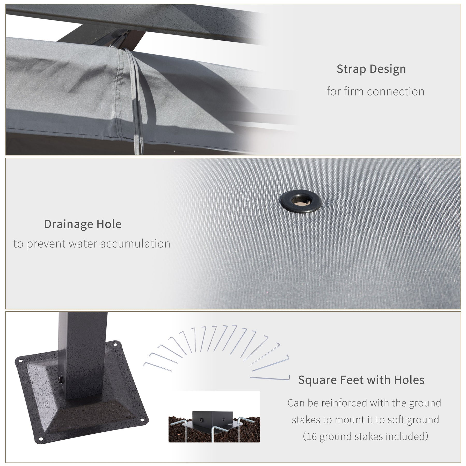 Upgrade your outdoor space with this classic retractable pergola canopy from Outsunny! The large footprint offers plenty of room to set up dining sets, lounge furniture under the protection of the retractable canopy. A reinforced, anti-rust steel frame ensures strong support, while the fully retractable canopy awning allows you to curate the exact amount of sunlight or shade you want. This Outsunny pergola gazebo is the perfect outdoor addition to make your patio area cozy and inviting.