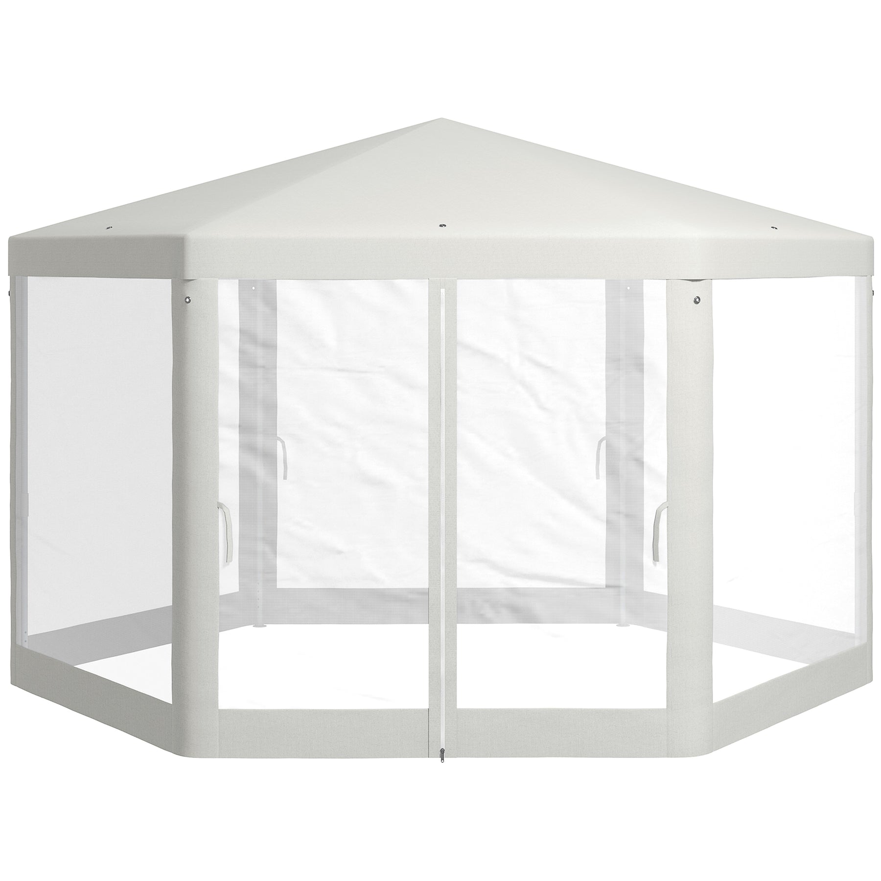 This Outsunny outdoor tent canopy is great for family parties and weddings. The peak top hexagonal outside tent has a powder-coated robust steel frame for stability. Includes six mesh sidewalls (2 zippered) to vary the amount of light and ventilation. The fully enclosed netting covers the outdoor party tent to keep the insects away. With this canopy tent with sidewalls, your friends and family will have an excellent place to enjoy outdoor living!
