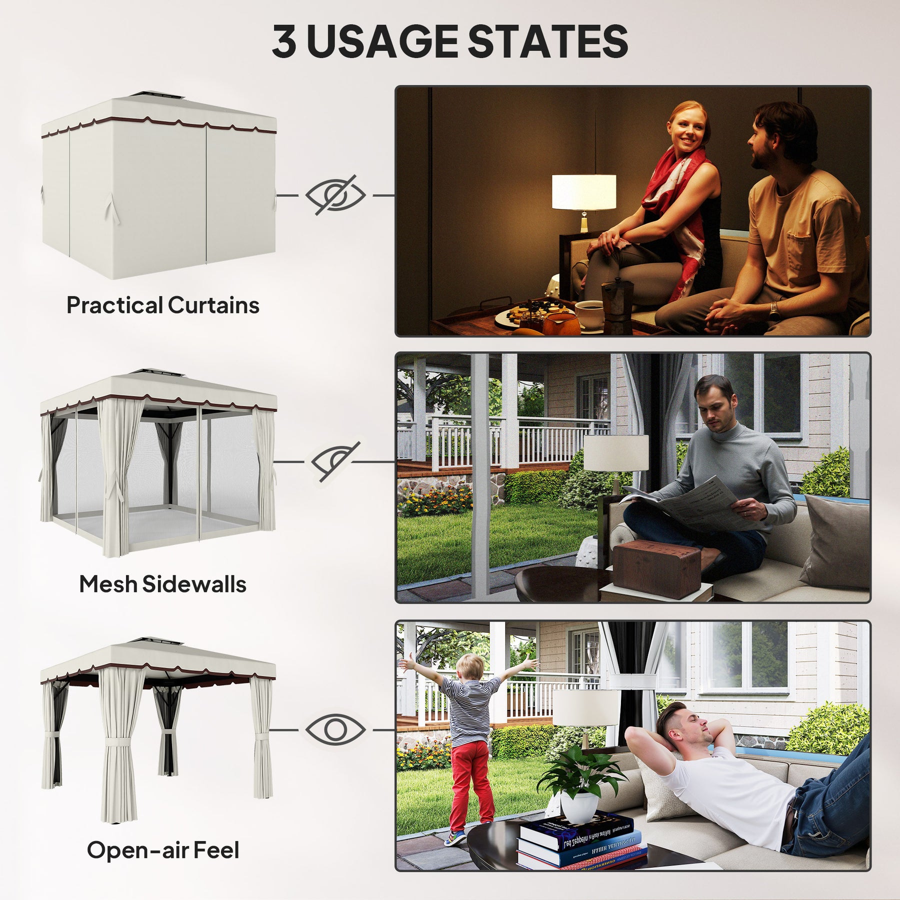 Imagine yourself relaxing outside in the beautiful summer weather. Sun is shining, a drink is in your cup. Wait, that sun though, it's really warm... next thing you know it's far too hot and you're back inside. That is, of course, unless you find yourself in the protective cover of an Outsunny outdoor 10' x 10' patio gazebo. It's just you, your friends and family, this patio gazebo, and some fine times spent enjoying the great outdoors in your own personal oasis.