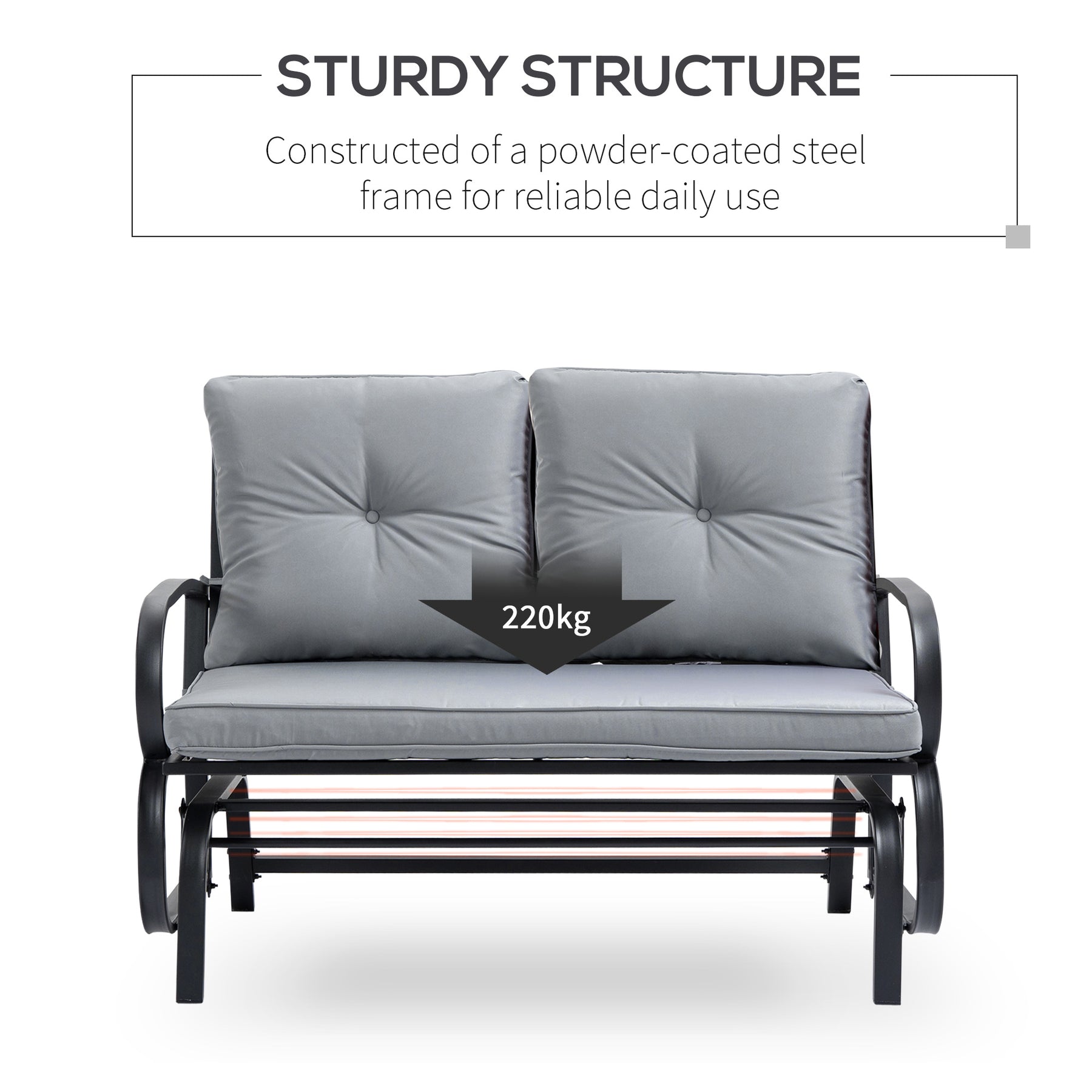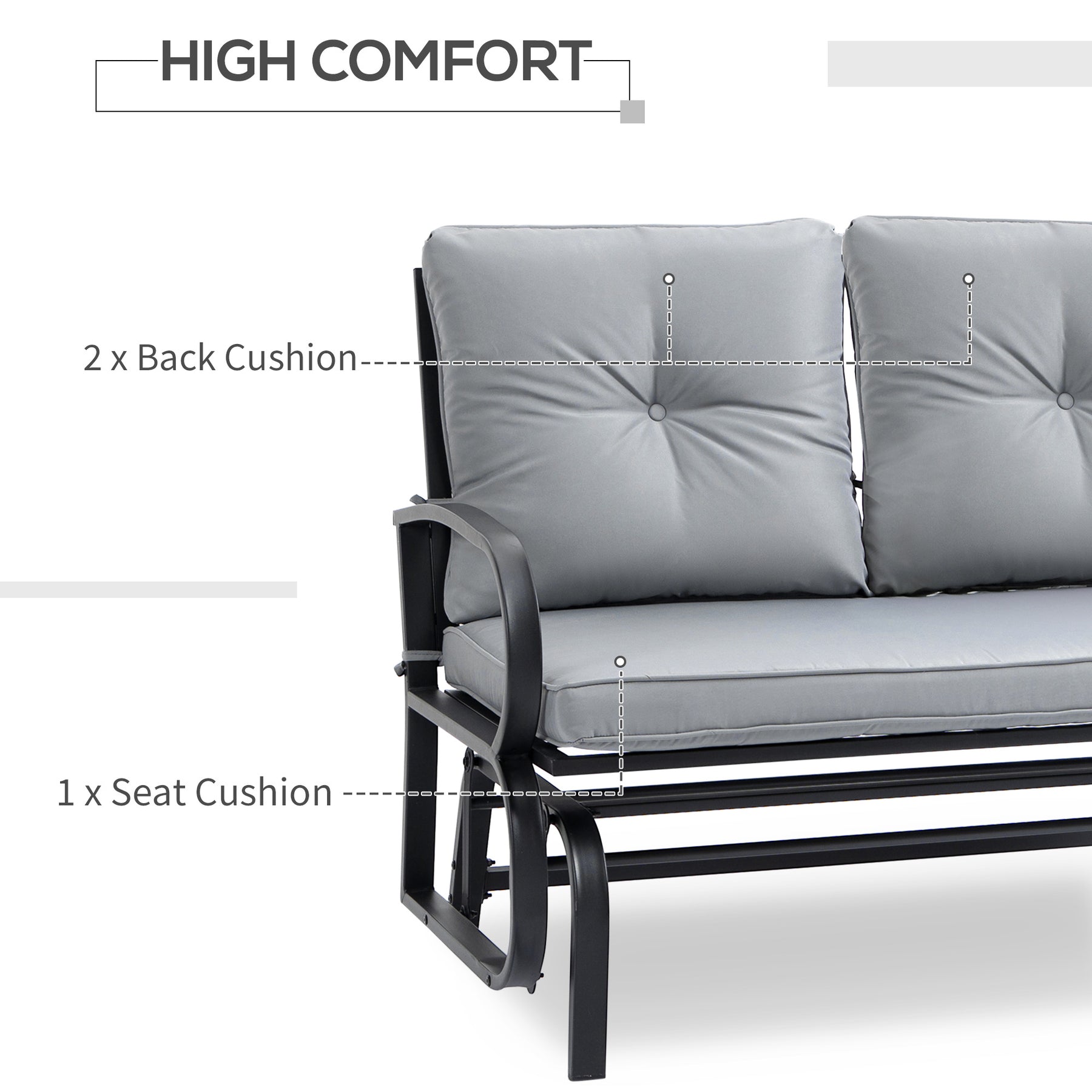 Outsunny outdoor glider bench is a great choice to enjoy the outdoor and feel nature. The neutral tone appearance makes it an all-match décor to fit perfectly your garden, porch, and front yard area. Featuring smooth gliding, curved armrest, soft cushions and backrest, this front porch bench provides high comfort when relaxing and lounging. On a cool evening, the wind is blowing, get this outside bench to your yard and enjoy the cozy leisure time
