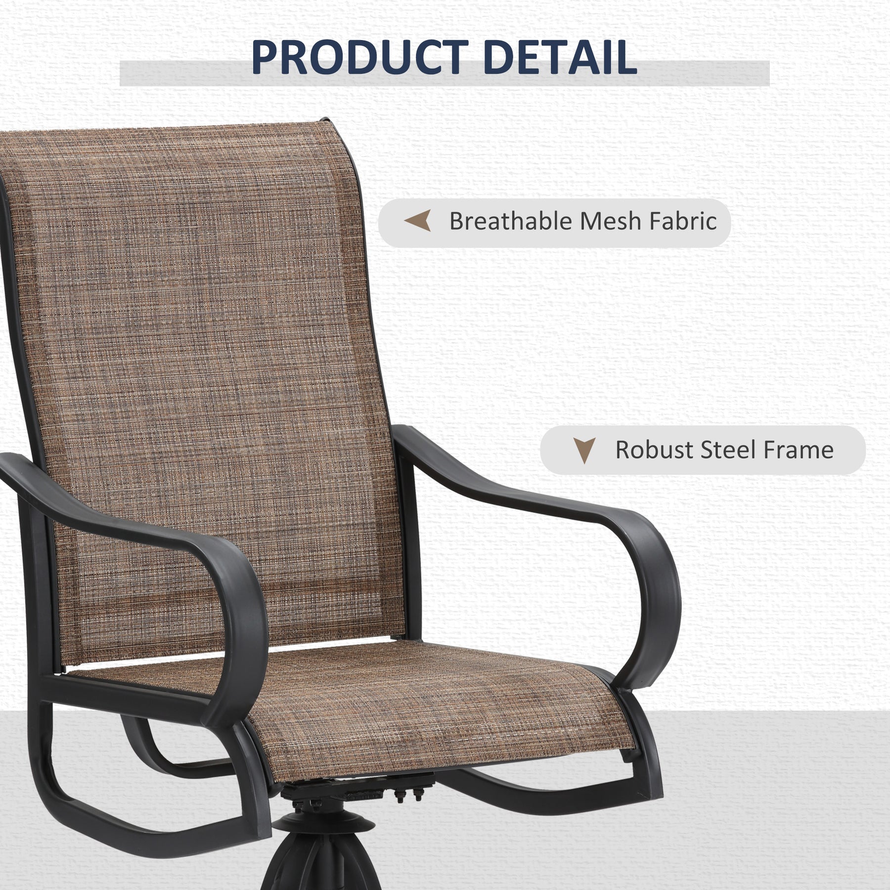 Boring patio? Brighten your backyard with Outsunny's outdoor table and chairs set for 4 and make the outside of your home just as inviting as the inside. Oftentimes, due to uncomfortable seating or simply a lack of furniture, many outdoor environments go underused or ignored completely. Outsunny believes that you can change that with a budget-friendly investment in our designer outdoor furniture sets. Our outdoor swivel chair creates an inviting setting you'll want to use year after year.