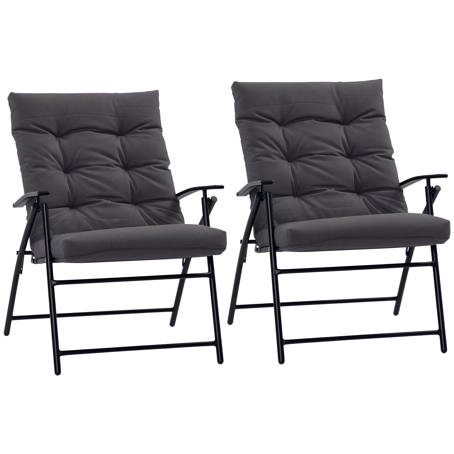 Relax anywhere with these two armchairs from Outsunny. Both are foldable, meaning they're easily to carry and take anywhere. The 2-position adjustable backrest allows you to find a most comfortable angle for reading or sunbathing. Equipped with detachable cushions for great comfort. Quite suitable for indoor and outdoor use or being taken to camping, sports events and other outdoor trips.