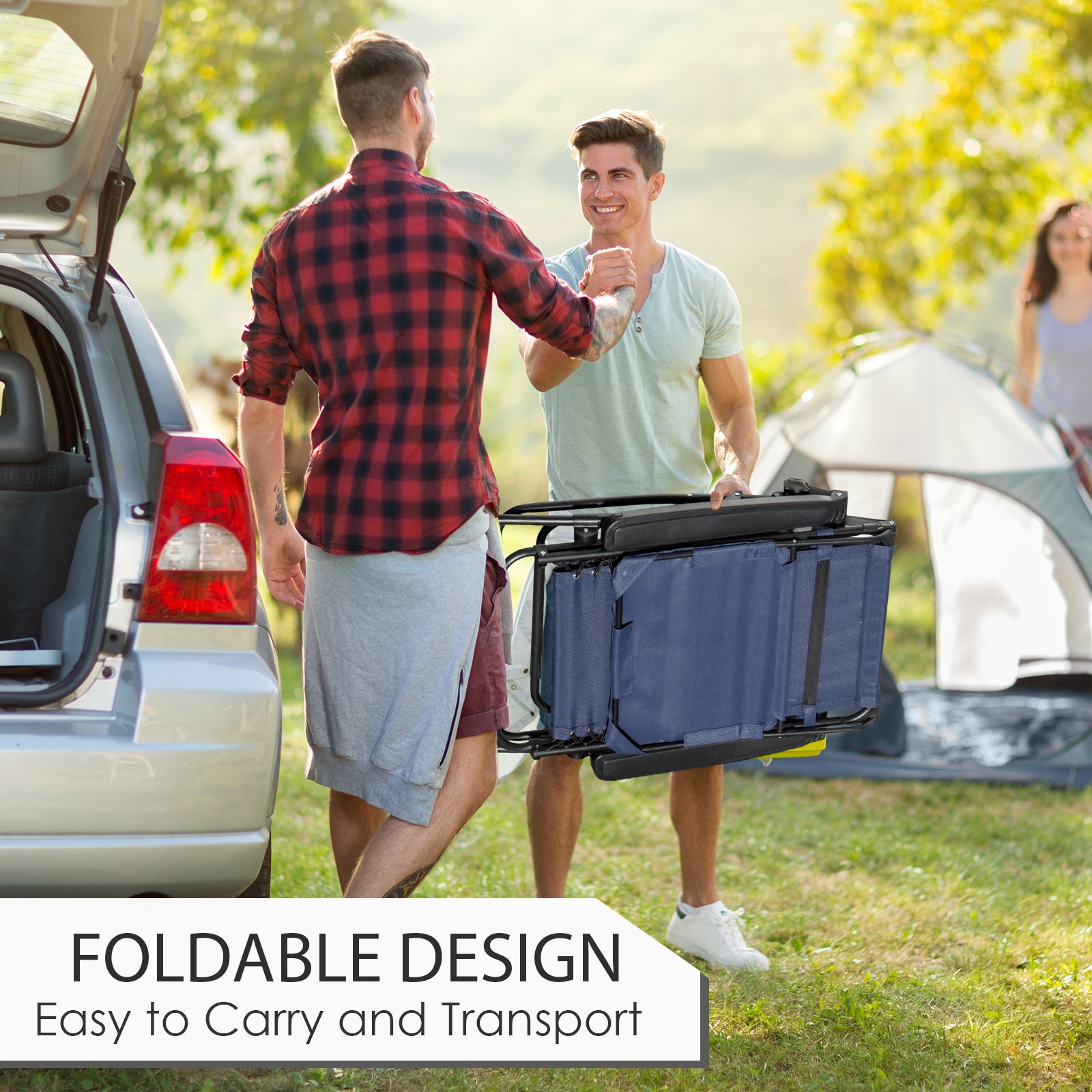 - • Powder-coated steel frame ensures strength and lightweight portability
