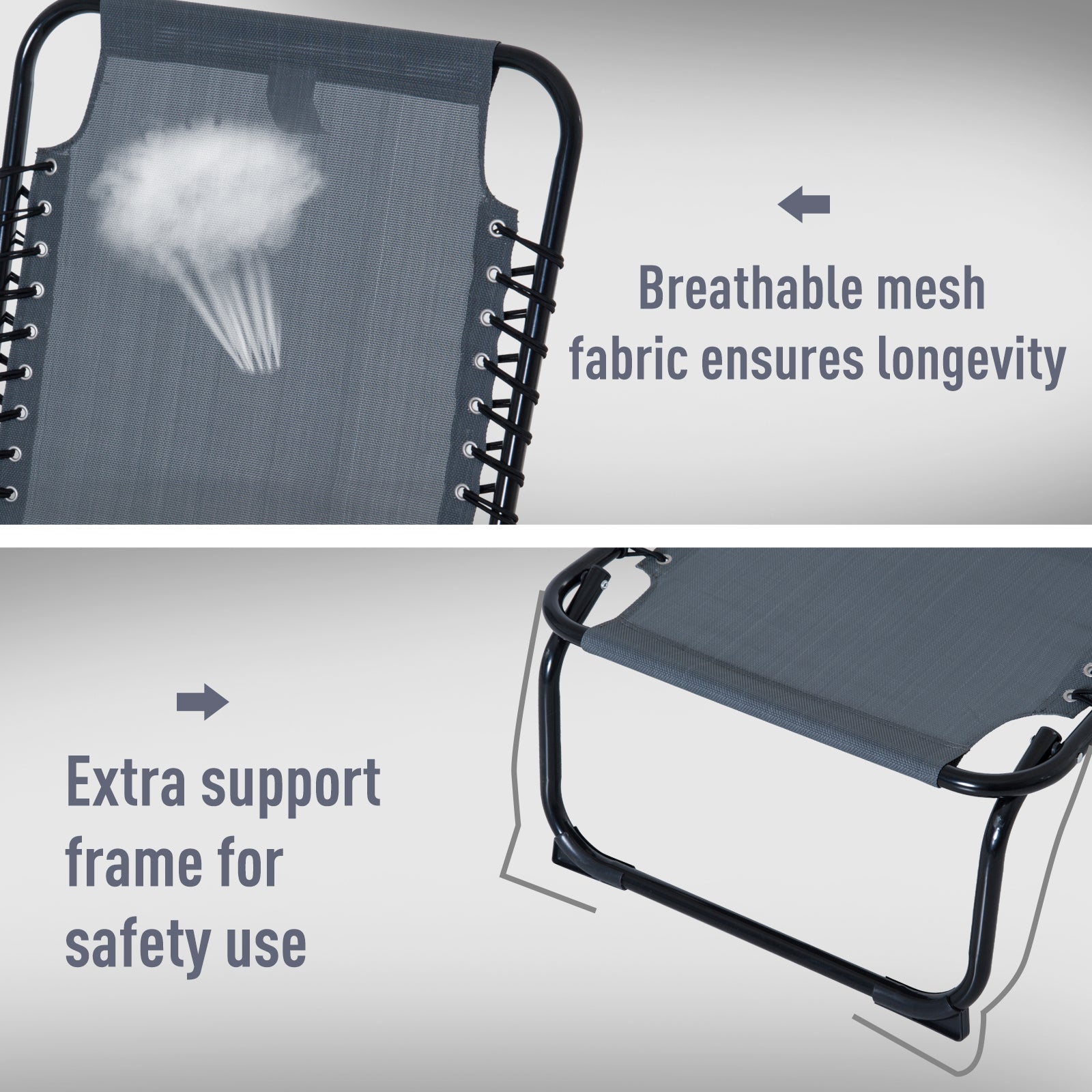 This reclining lawn chair offers quick-folding chaise lounge seating and sunbathing space. The backrest can be set to recline in 4 different positions so you can lie down at the angle of your choice. Easy to move and bring on the road, this lawn chair can fold up and come with you to the beach, a campsite, or a pool. Sit back and sunbathe on the form-fitting, quick-drying, bungee-suspended mesh. It stays cool in the sun and dries quickly if you sit after just getting out of the pool.