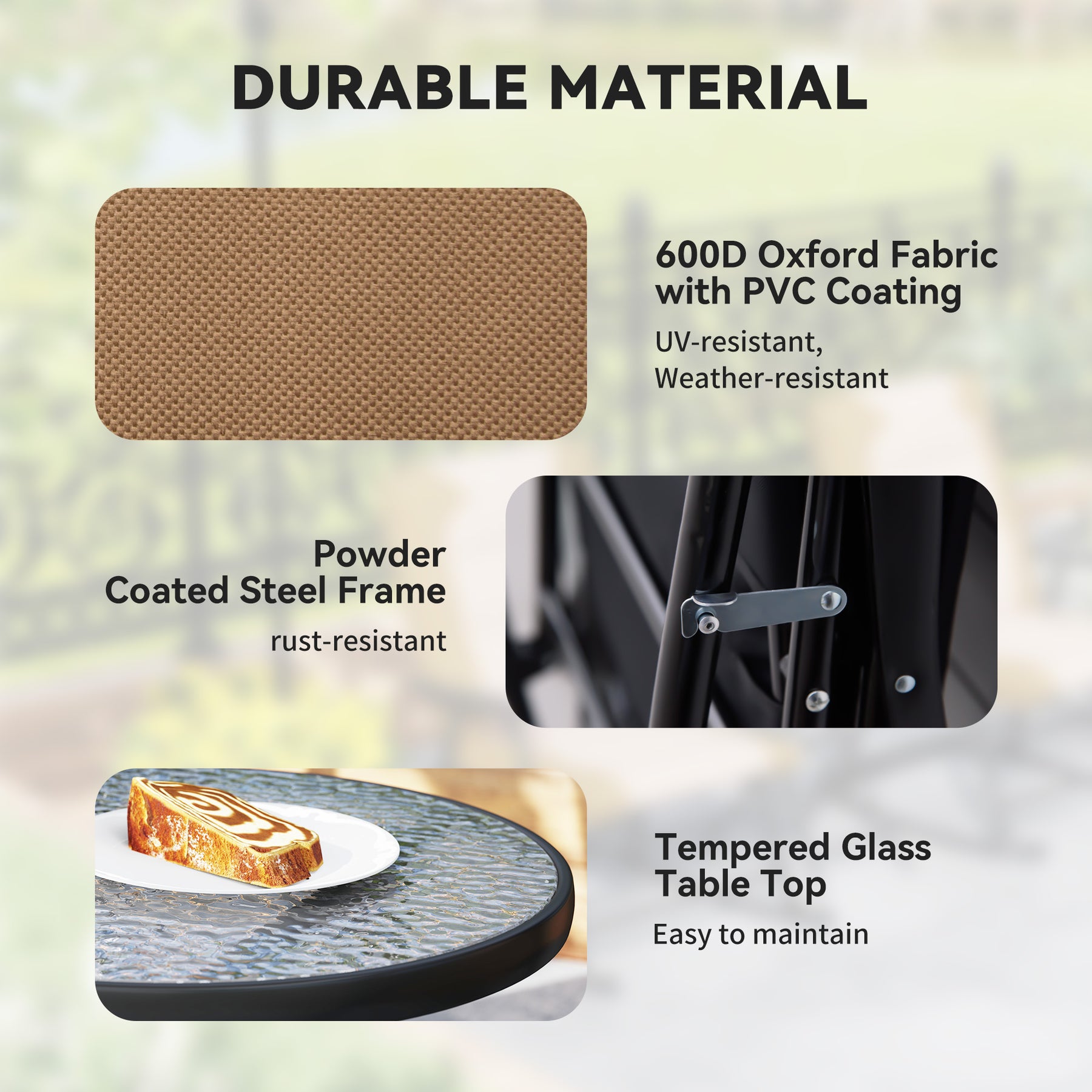 - • Material: Oxford Fabric, Steel Frame, Tempered Glass