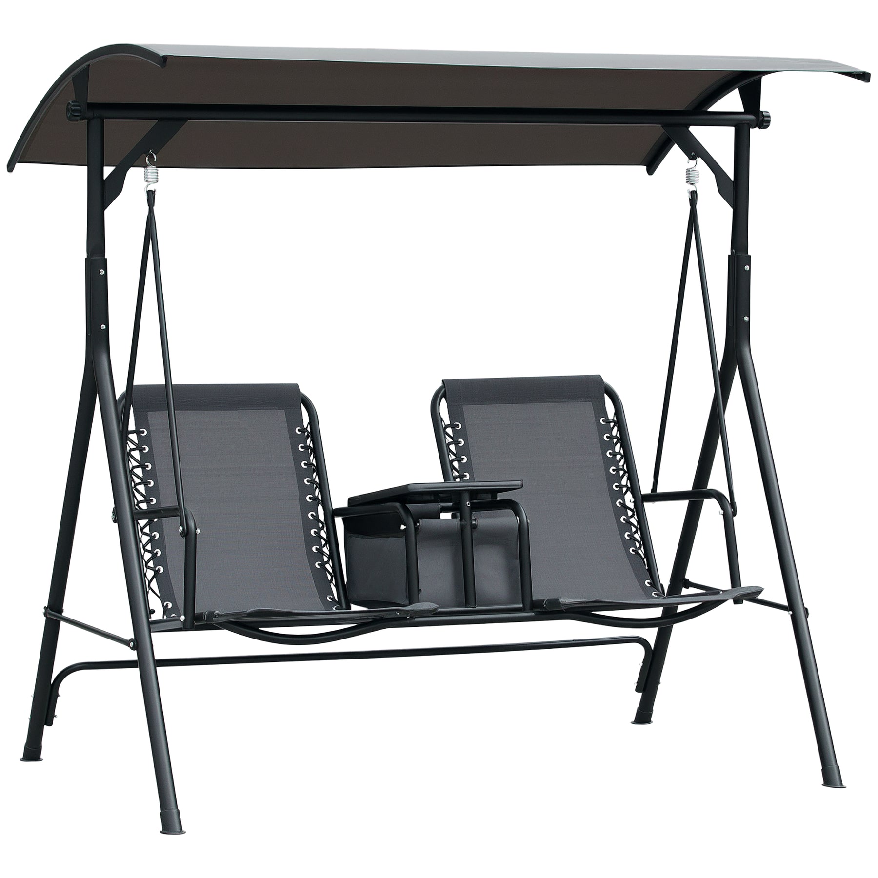 Brighten up your backyard with our 2 Person covered outdoor swing chair ! With an adjustable canopy, outside swings for adults provide protection from bad weather elements, and 2 independent seats for you and a friend to seat comfortably. The swinging bench is made of a weather-resistant powder-coated steel frame that is super easy to clean and quick dry. This free standing outdoor swing complements any outdoor setting and glides with style with this cozy canopy swing.
