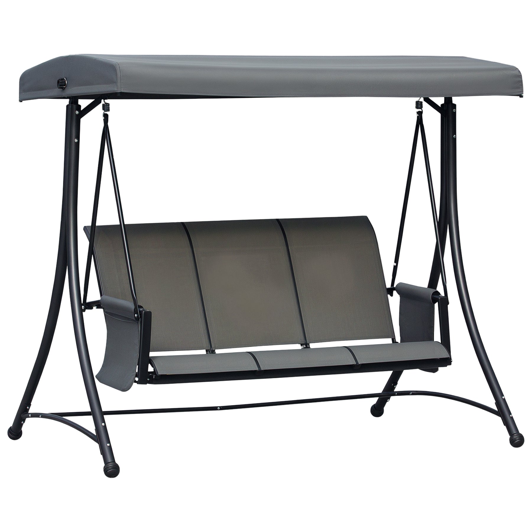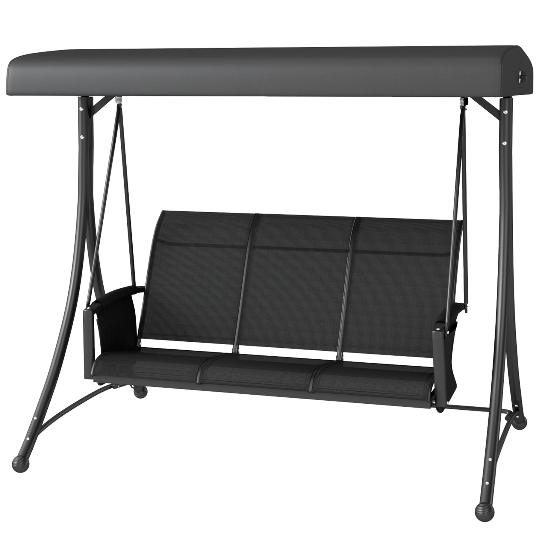 The Outsunny 3 person swing with canopy is equipped with three well-ventilated seats, which provides fantastic sitting comfort and cleaning convenience. With an adjustable canopy top for optimal shade coverage, this swinging bench provides proper sun protection. Adult swing set's solid construction ensures proper comfort and security. Add our Outsunny 3 seat swing to your outdoor furniture collection and spend your leisure time using this free standing outdoor swing!