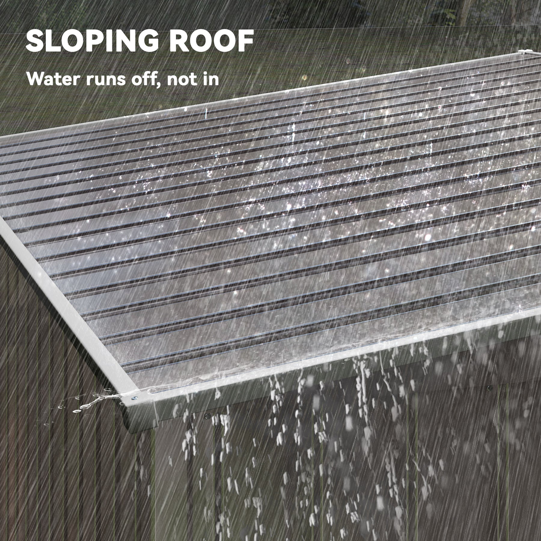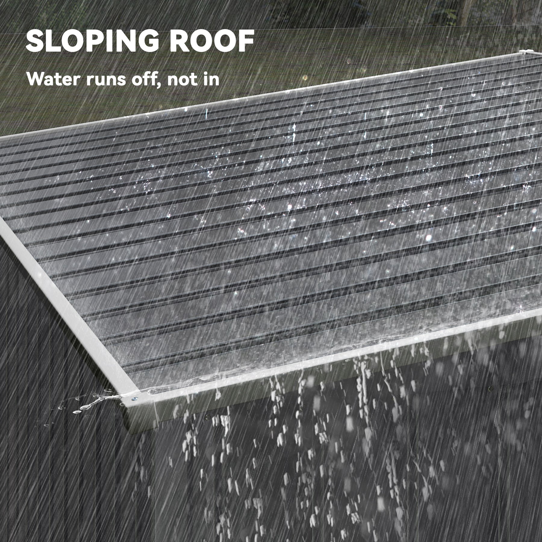 - • Galvanized steel frame is stable and resistant to rust. A sloped roof avoids water accumulation