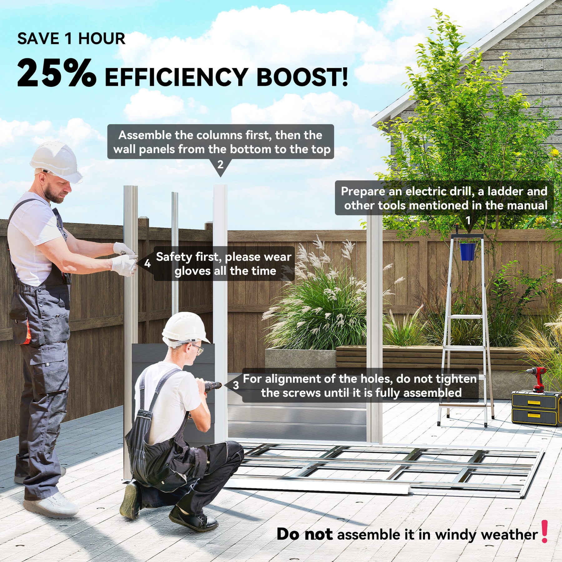 - • Functions as a tool shed, bike shed, generator shed, or lawn mower storage