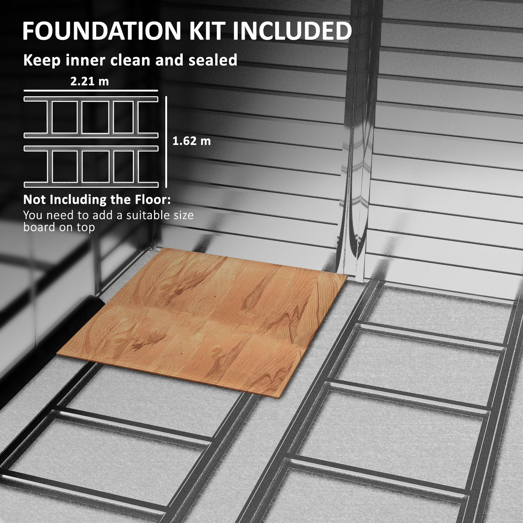 - • A floor foundation was included to prevent storage items from touching the ground directly