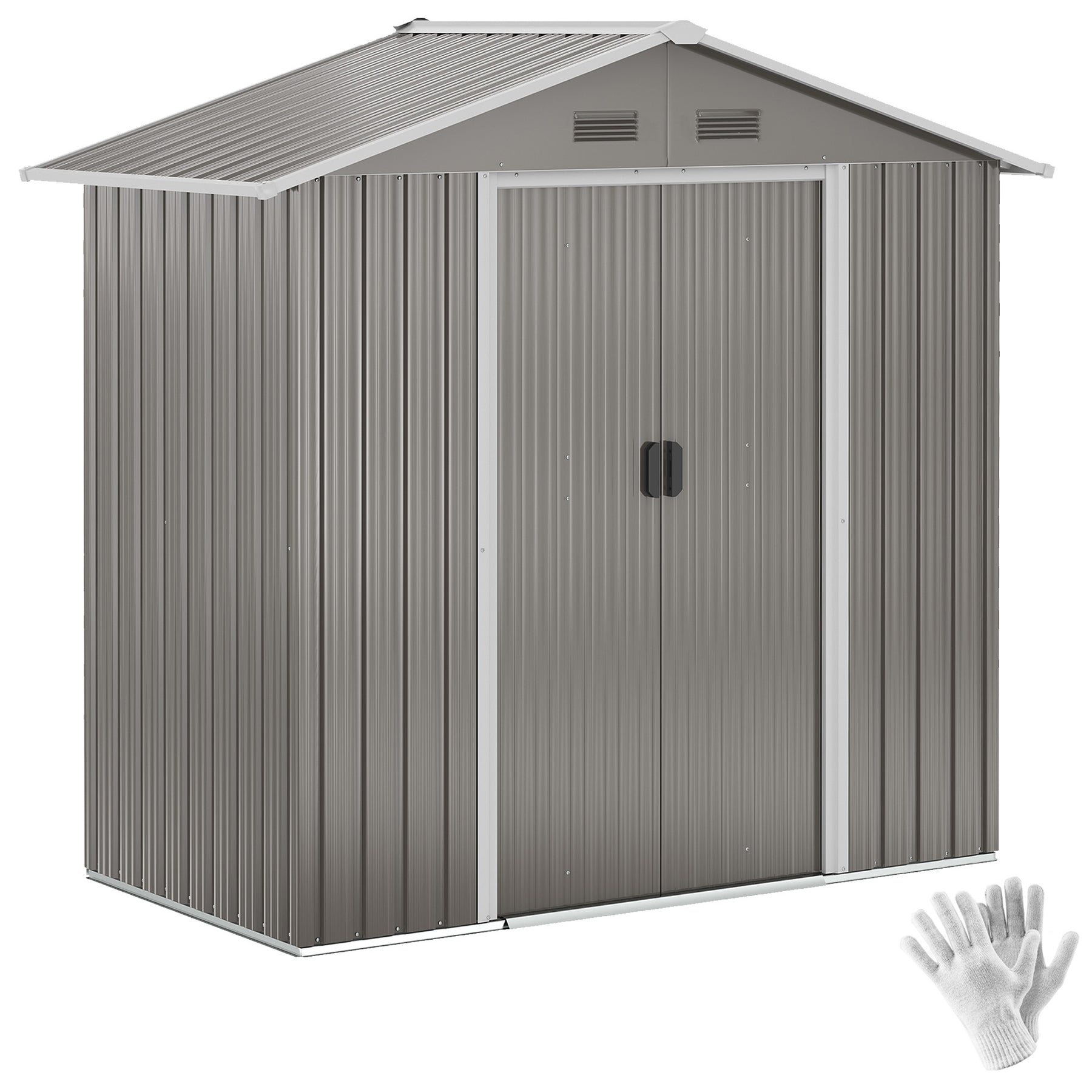 Keep your garden equipment and outdoor essentials locked away securely with this metal outdoor storage shed from Outsunny. Built from galvanized steel for enduring reliability, double sliding doors on the front for easy access and four vents for air to circulate and prevent moisture build-up. The double door shed is finished with a protective weather coating - perfect outdoor sheds and garden buildings.