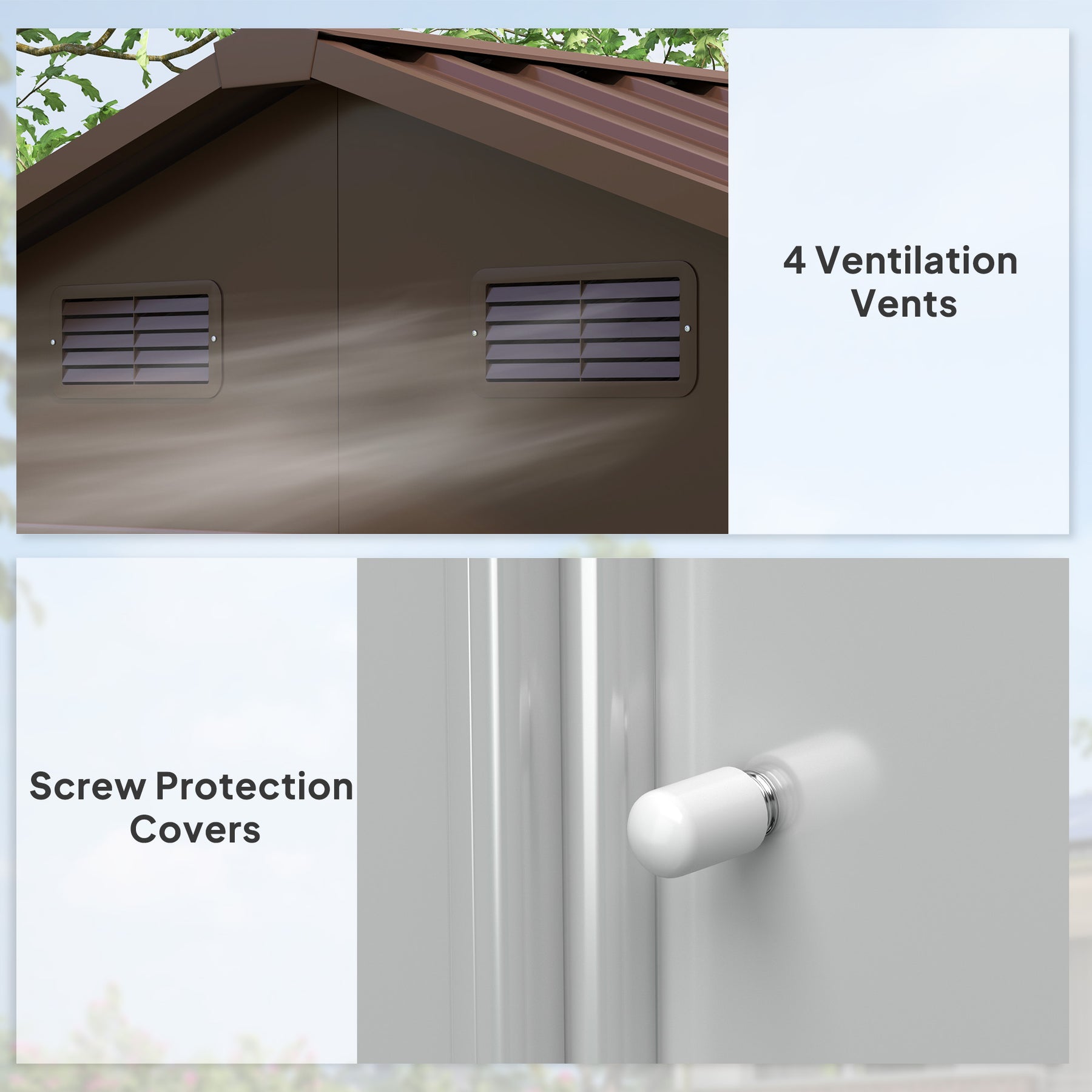 This storage shed from Outsunny is a stylish solution to keep your garden and outdoors tidy and organized. For every season, there are various garden tools that must be stored properly. Our outdoor storage shed helps you maintain order, whether for tools, gloves, rubber boots, hoses or the like. The garden shed is made from colour-coated steel-plate components, it has a protective film on metal panels for long term use, and also vents for airflow.