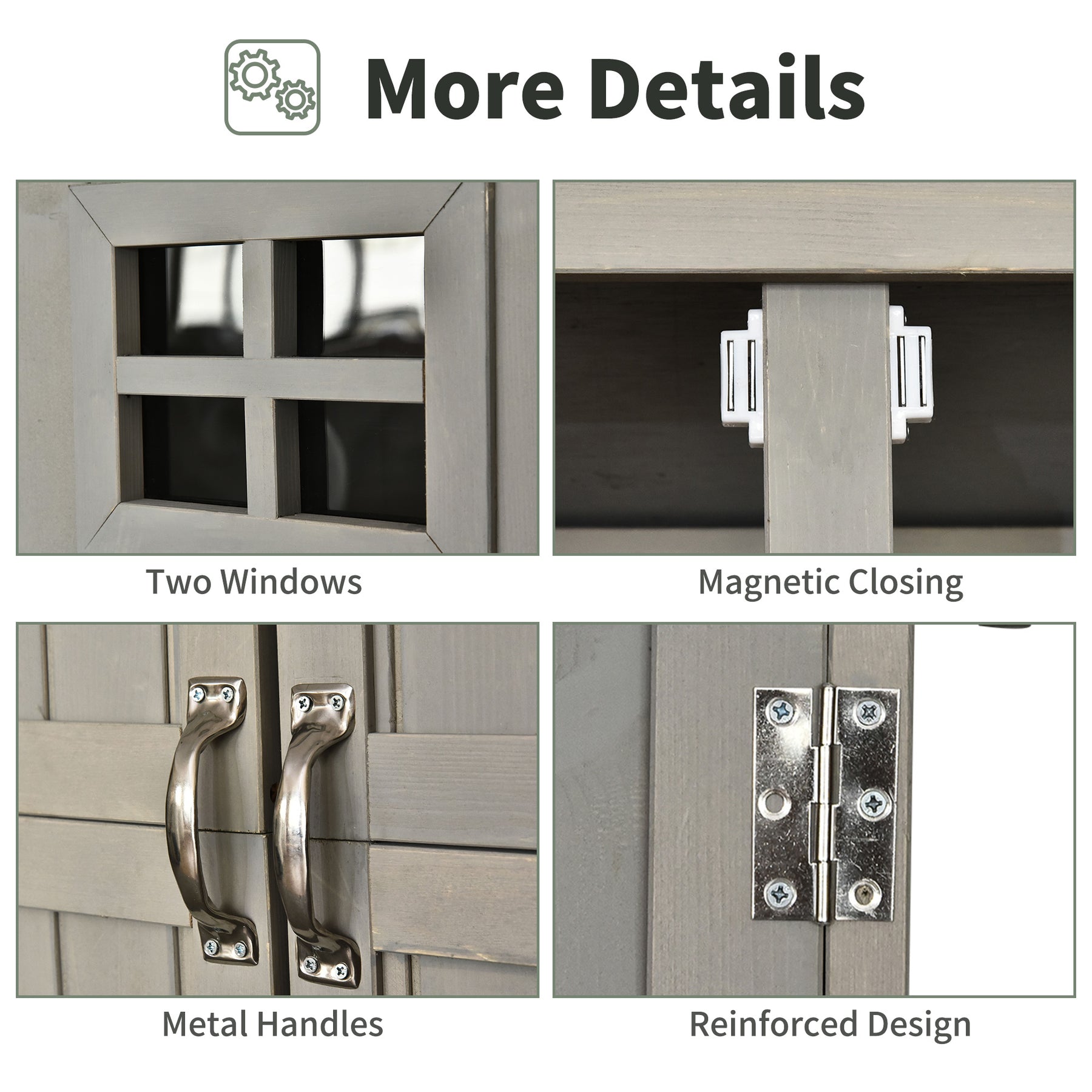 - • Magnetic closings on the two doors, with two small windows to let the light in