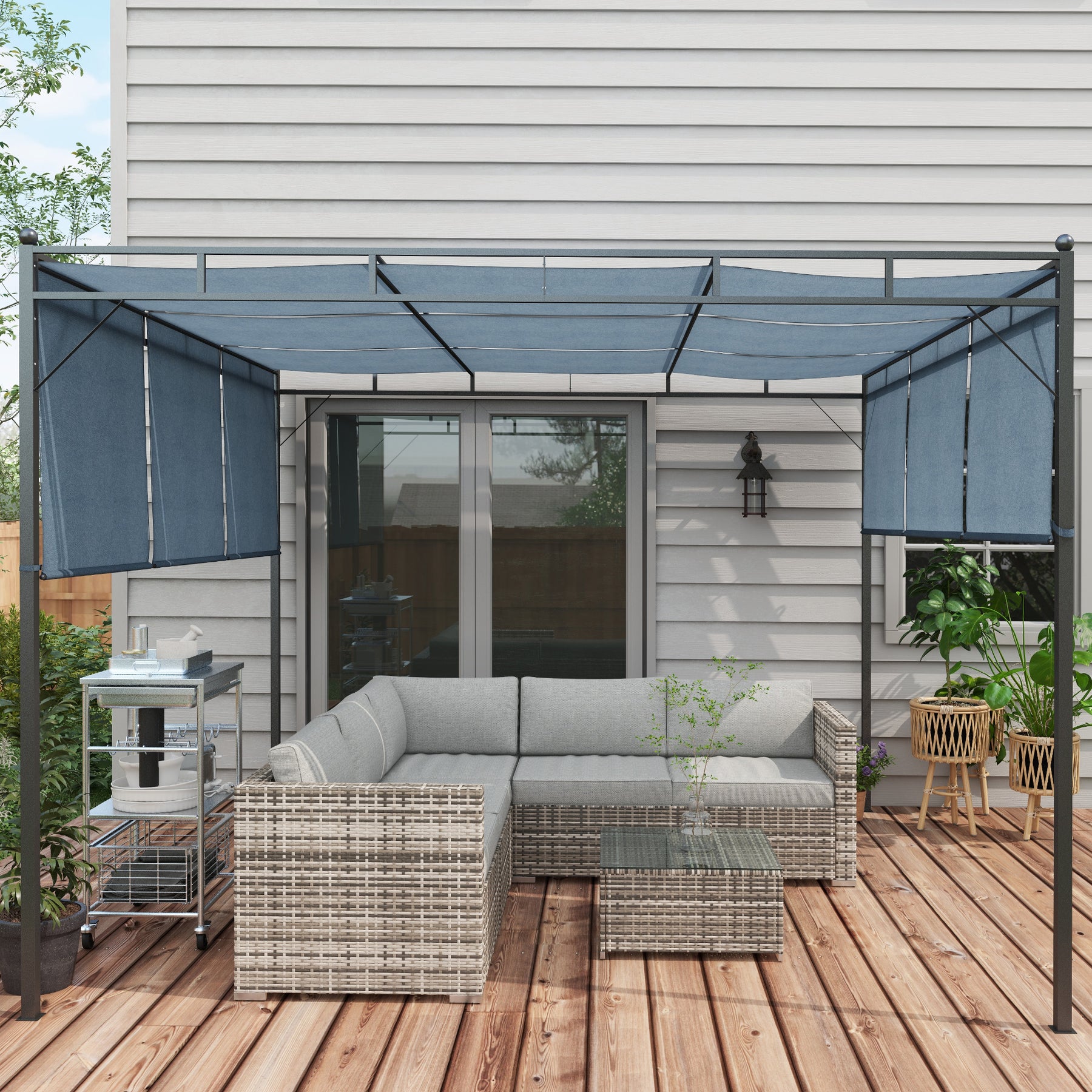 - • Built from a steel frame with weather-resistant PE rattan for years of use