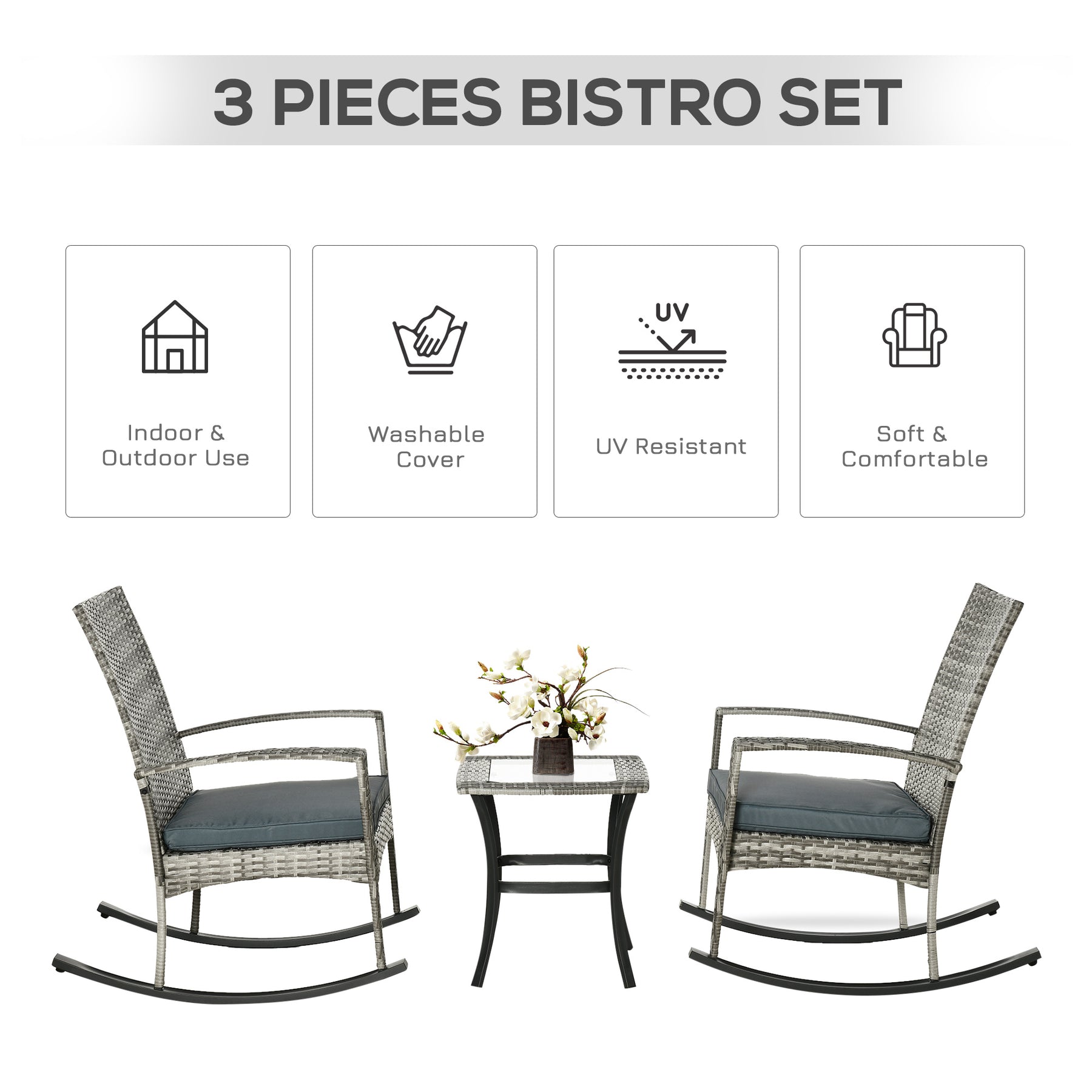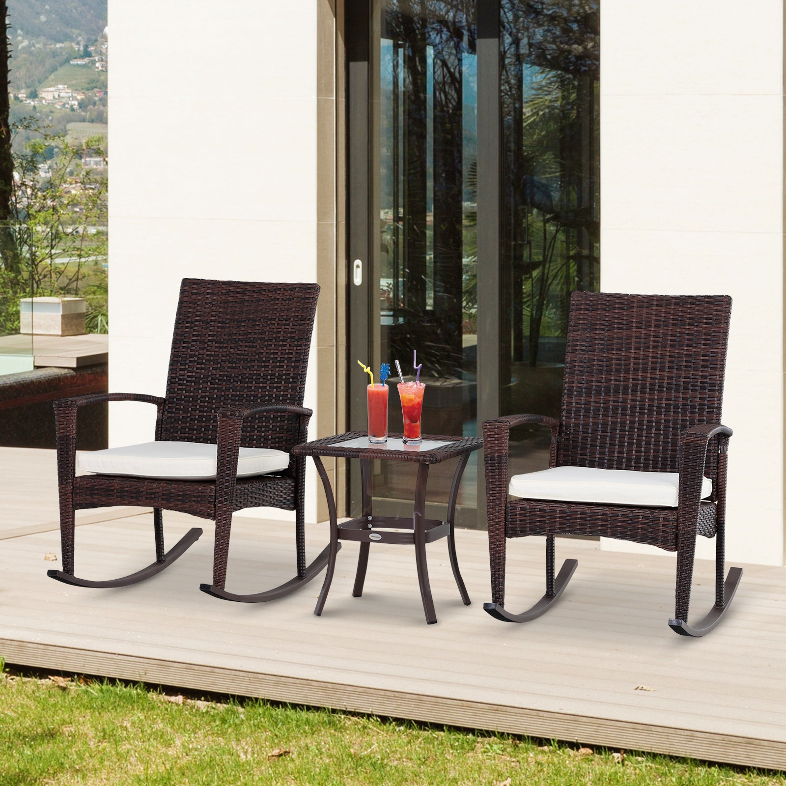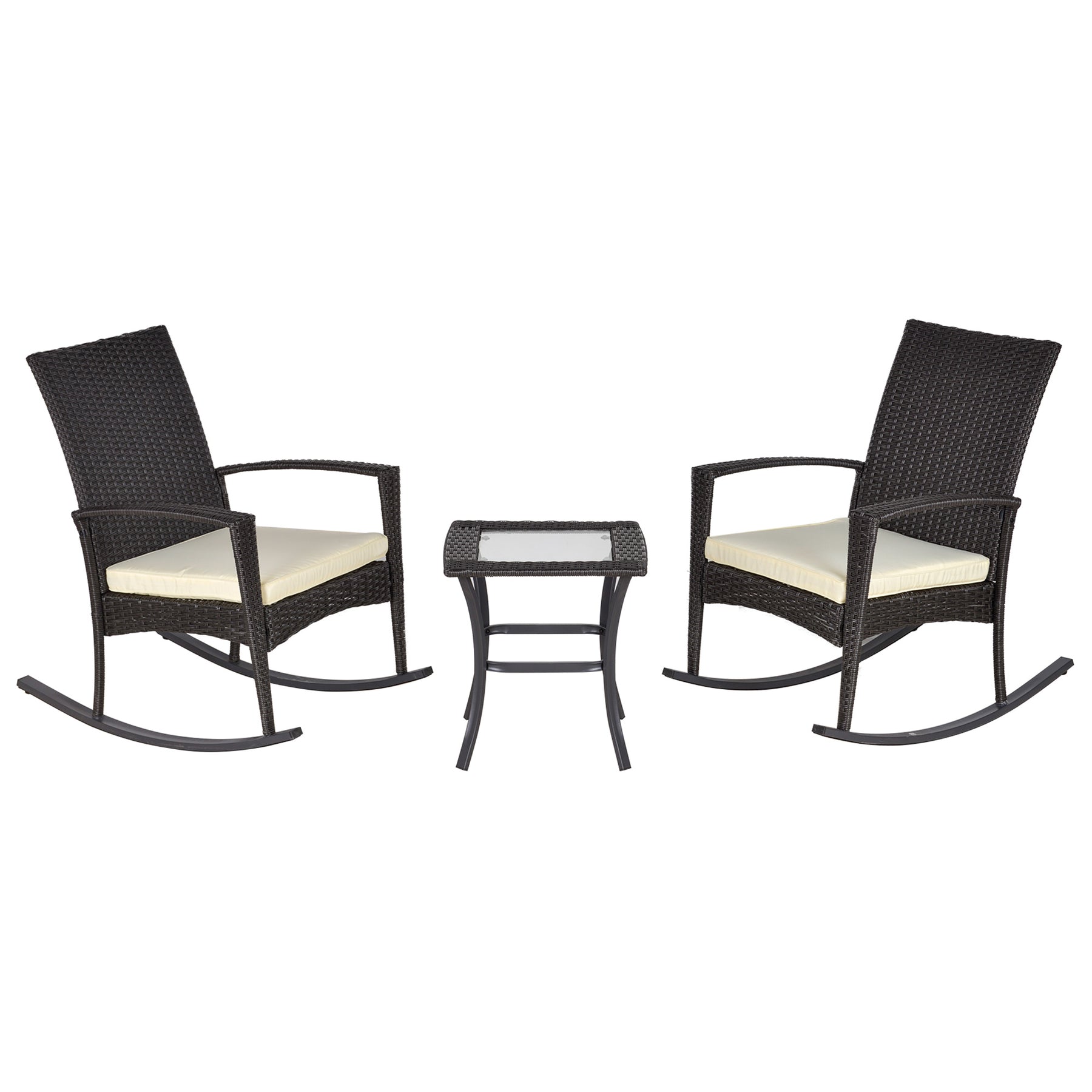 Having a hard time keeping comfortable on your current patio chairs? Enjoy the outdoors even more with your family in the mornings and evenings together. This modern rocking chair set from Outsunny is made of a strong steel frame wrapped with all-weather PE rattan wicker. Excellent lounging choice for your terrace, patio, poolside, or garden area. Decorative and functional, create an inviting setting so that you and your family can enjoy the slow mornings and lazy afternoons.
