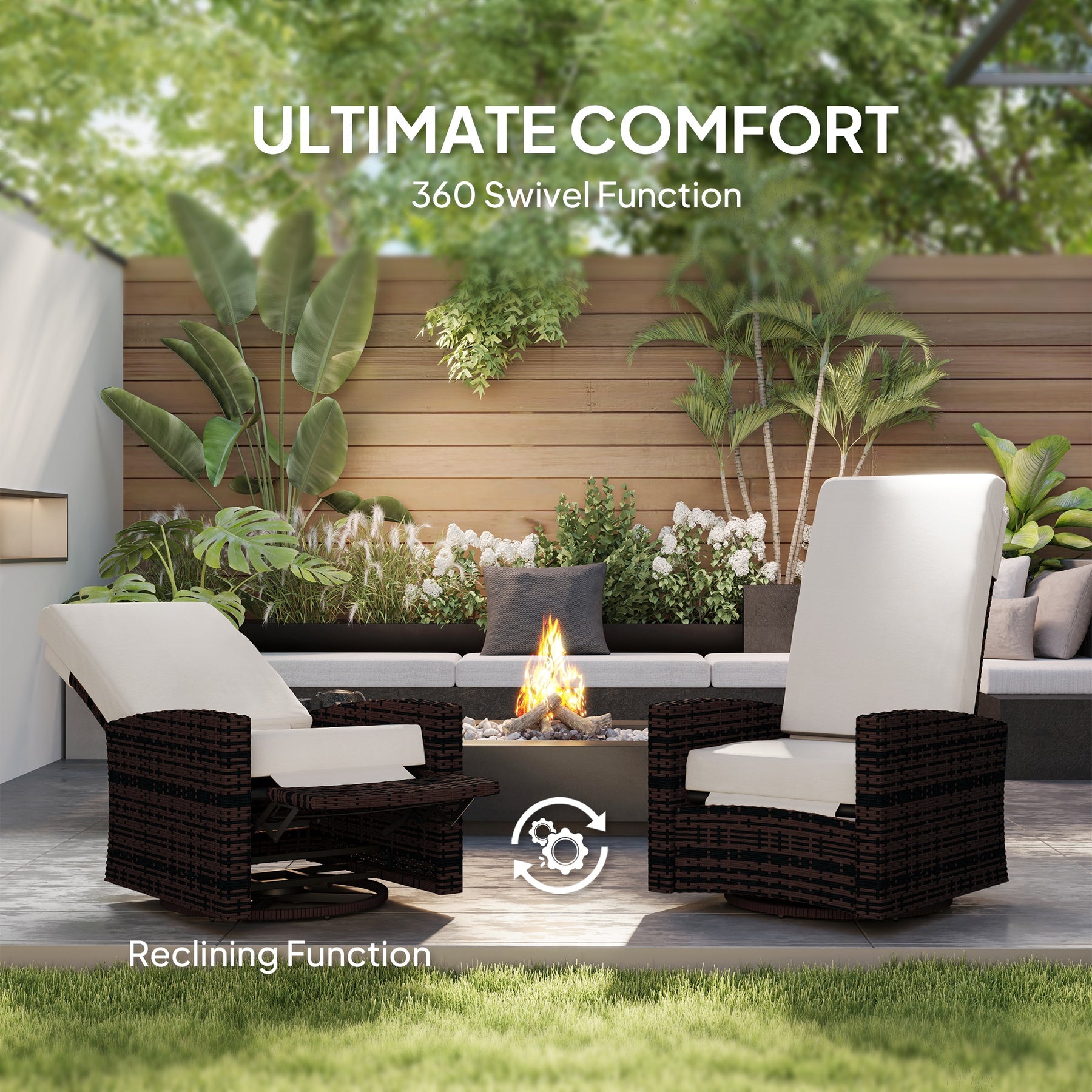 - • 1 x Swivel Rattan Recliner