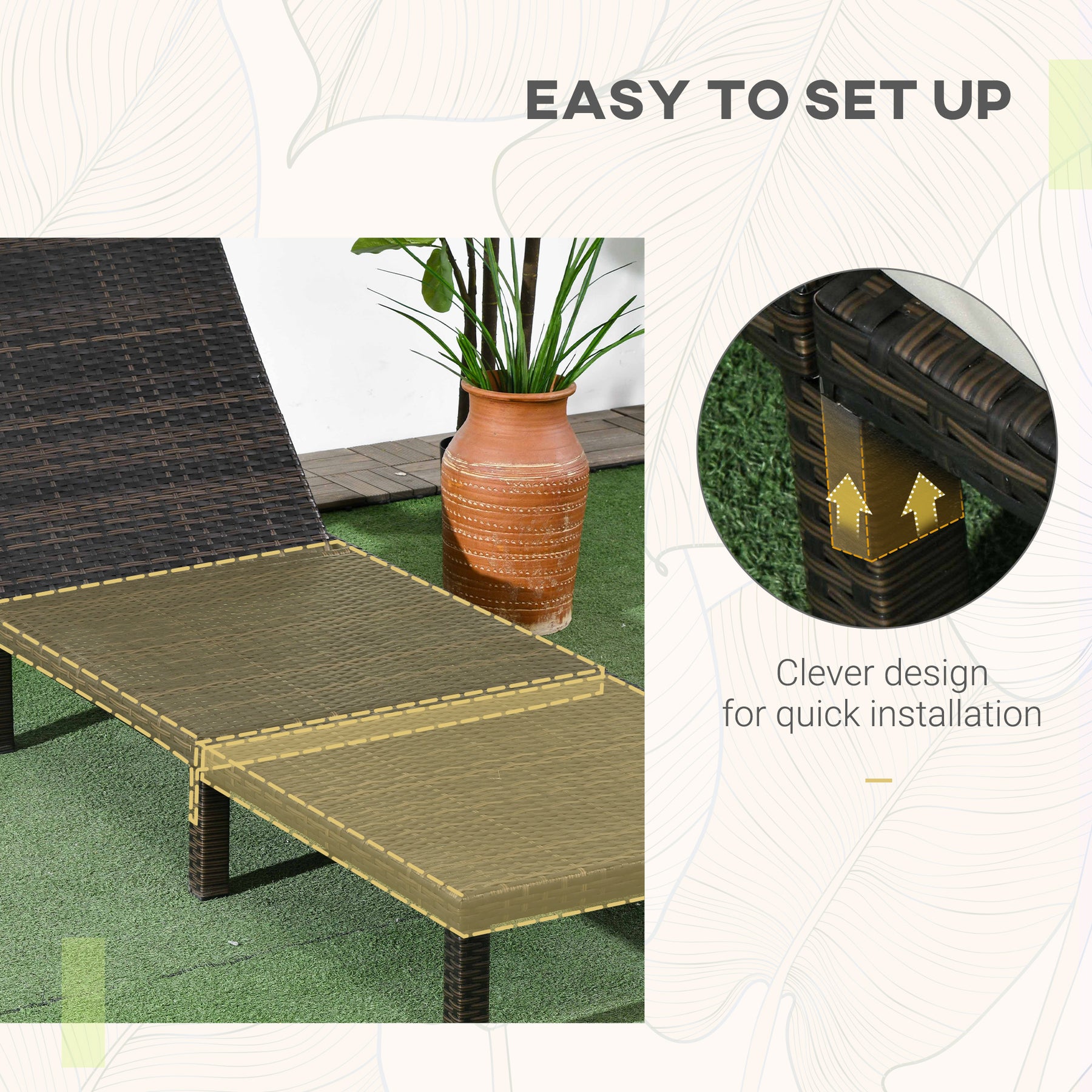 - • Weather-resistant PE rattan wrapped around a galvanized steel frame
