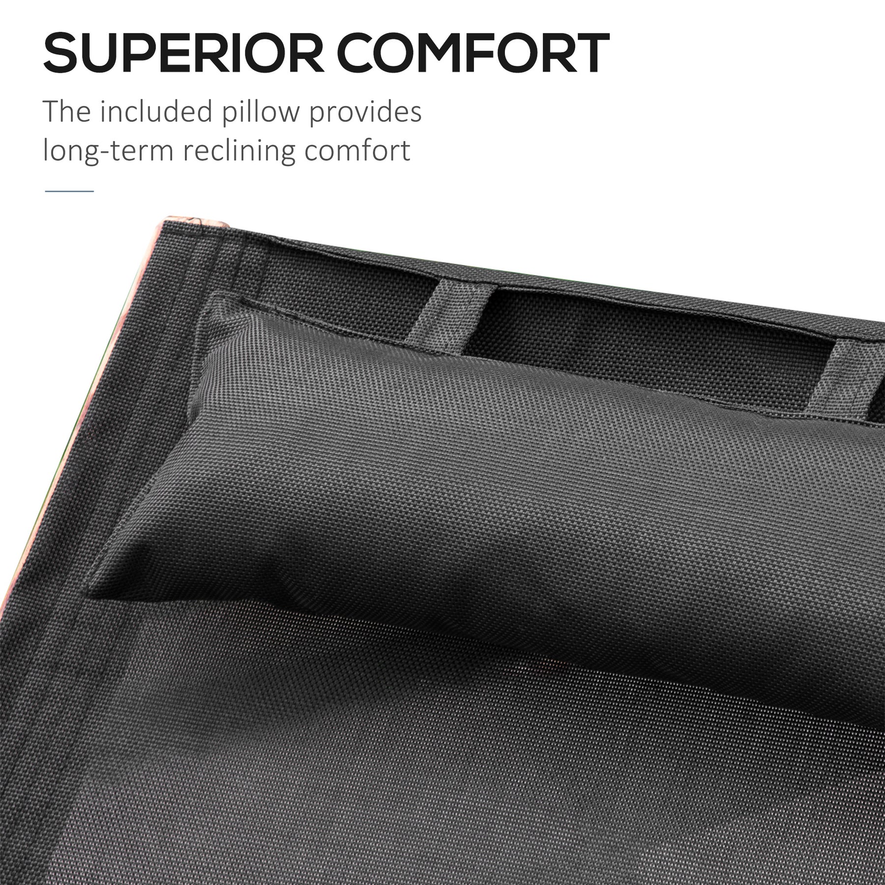 Bring the beach home with you. Our portable, lightweight Outsunny mesh lounger lets you have that relaxing summertime vibe anywhere you go. Great for poolside tanning or reading in the shade. Quick-drying mesh fabric keeps you cool and well-ventilated. The weather-resistant wood frame offers strong, reliable support. A thick cotton padded headrest and robust armrests add extra comfort and convenience. Stay cool and comfortable in the sun or in the shade with Outsunny.