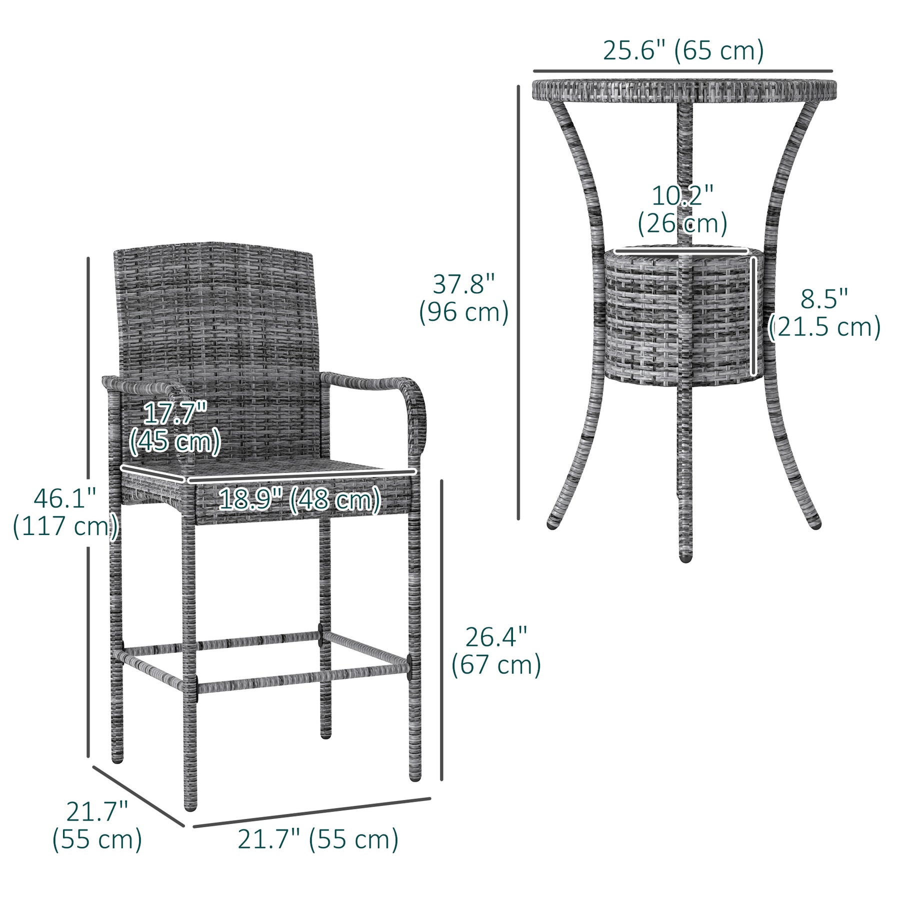 - • Bar Table Dimension: Dia. 25.5" x 37.75" H (Dia. 65 x 96 cm)