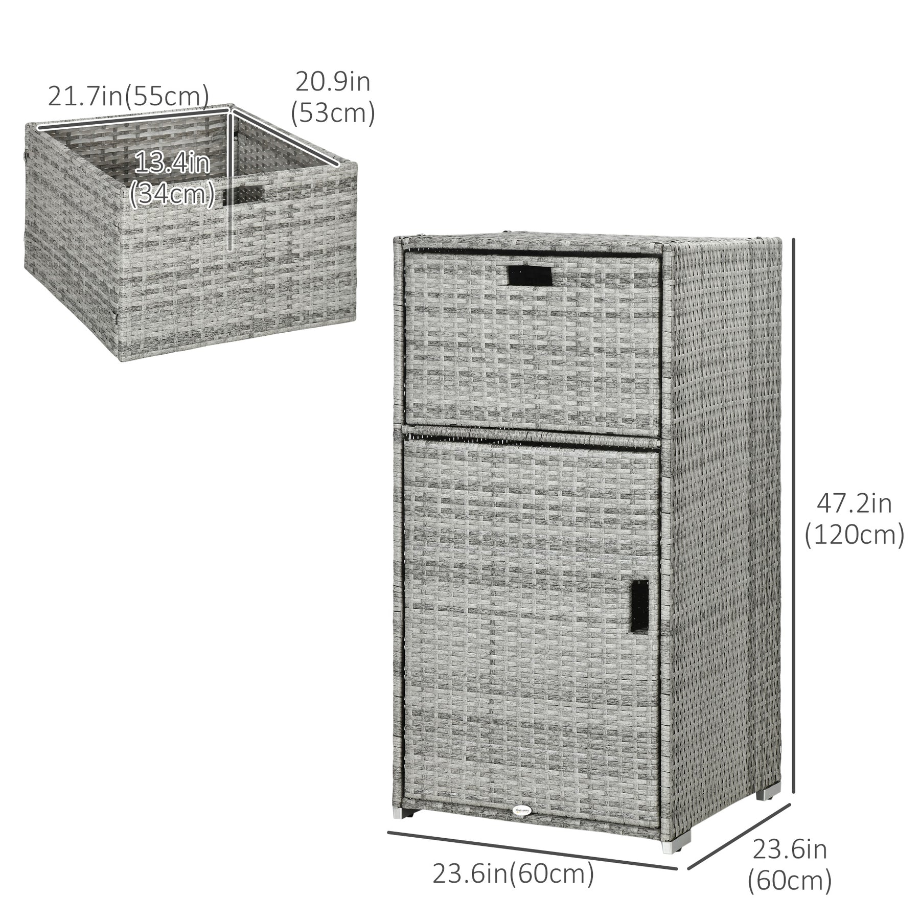 Keep your towels and pool accessories within reach with the convenient Outsunny Rattan Wicker Outdoor Towel Holder. This practical towel storage cabinet is constructed of durable galvanized steel and all-weather PE rattan wicker. It has a drawer with a handle and a large lower cabinet. Place it near your pool or spa to add storage space to your backyard!