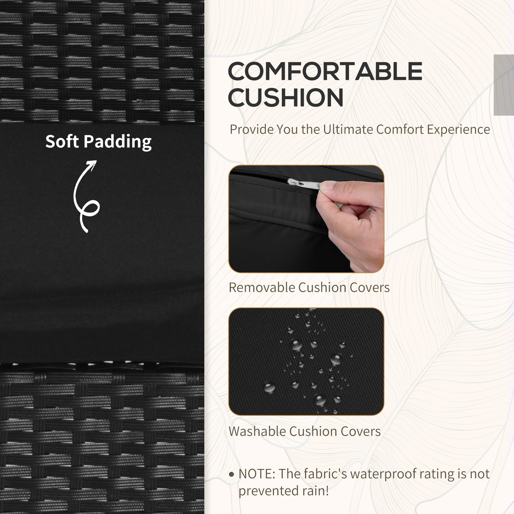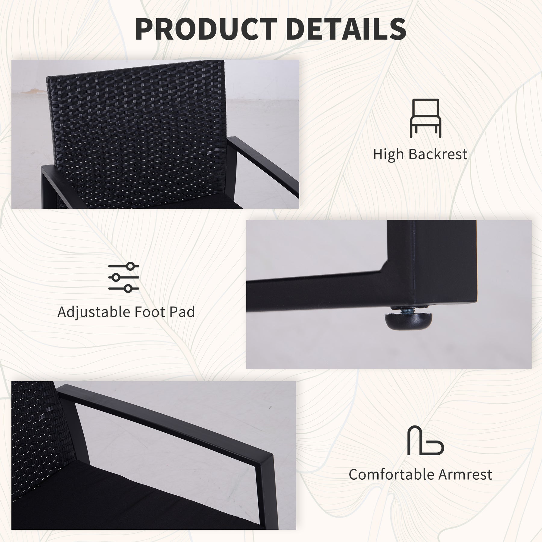 Outsunny offers a classic way to enjoy outdoor living with this 3pc patio rattan set. The 2 chairs and 1 matching teapot set can make a great addition to your outdoor patio or deck. Its exquisite workmanship ensures lasting durability. The table has 0.2" thick tempered glass for solid beverage placement, and the thickly padded cushions offer optimal comfort. The Outsunny 3-Piece Set is essential for any backyard or patio setting to complete the look in comfort and style.