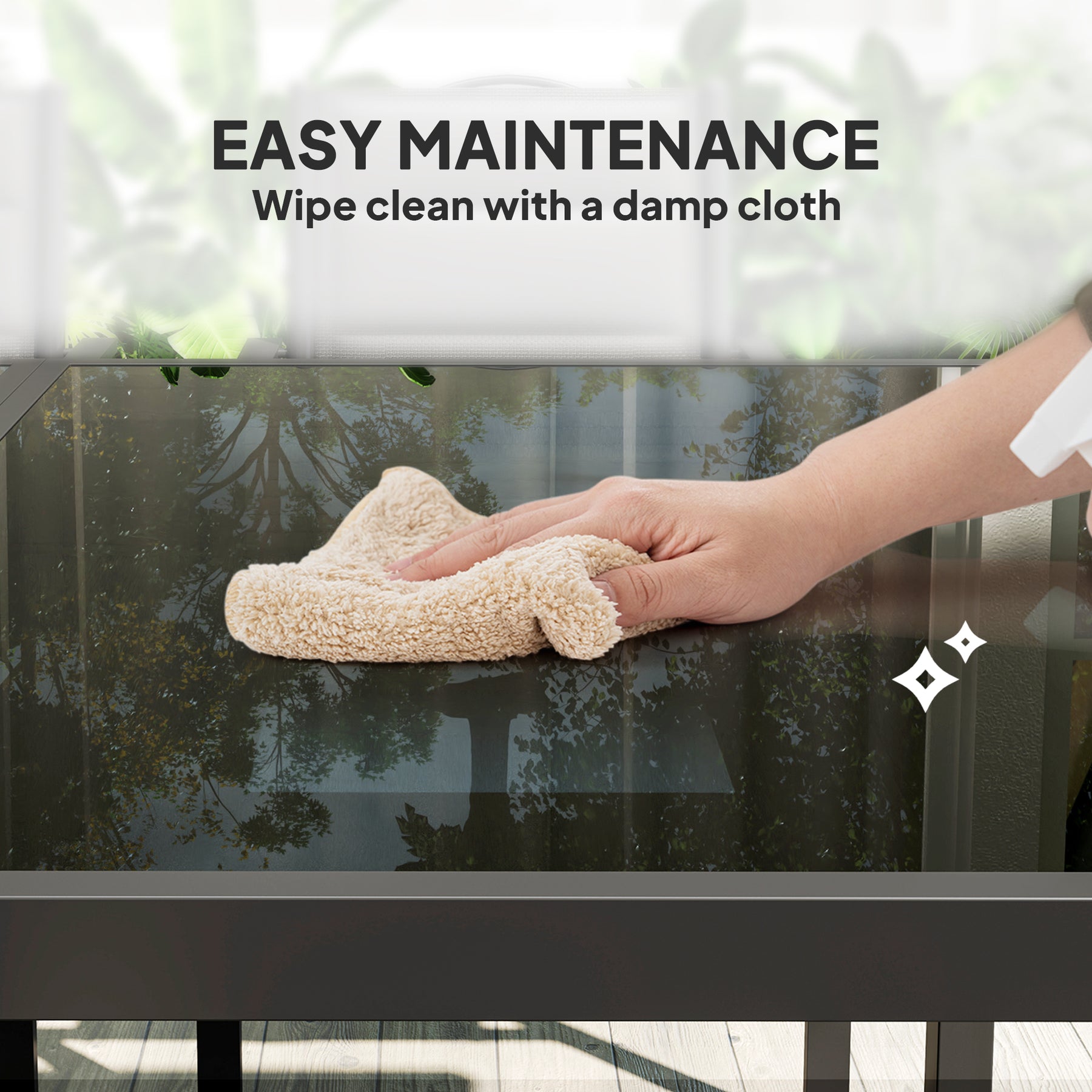 - • Features a 5mm tempered glass tabletop for stylish sturdiness