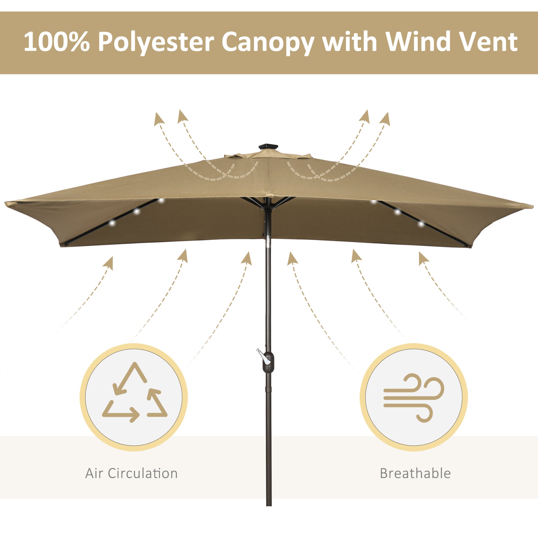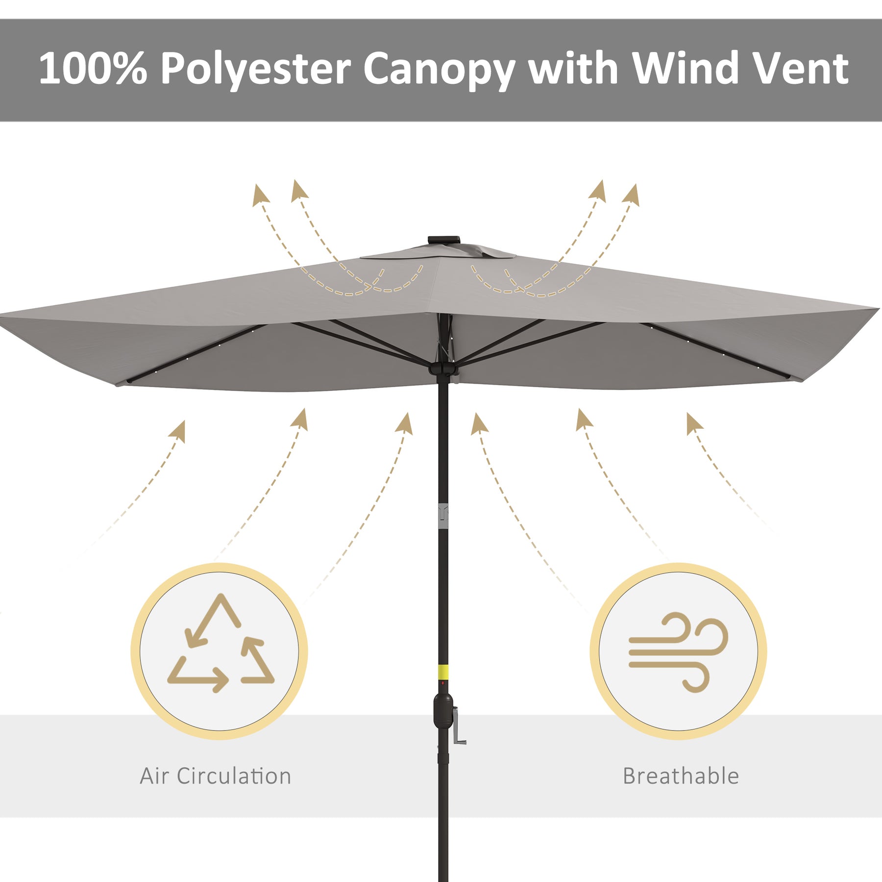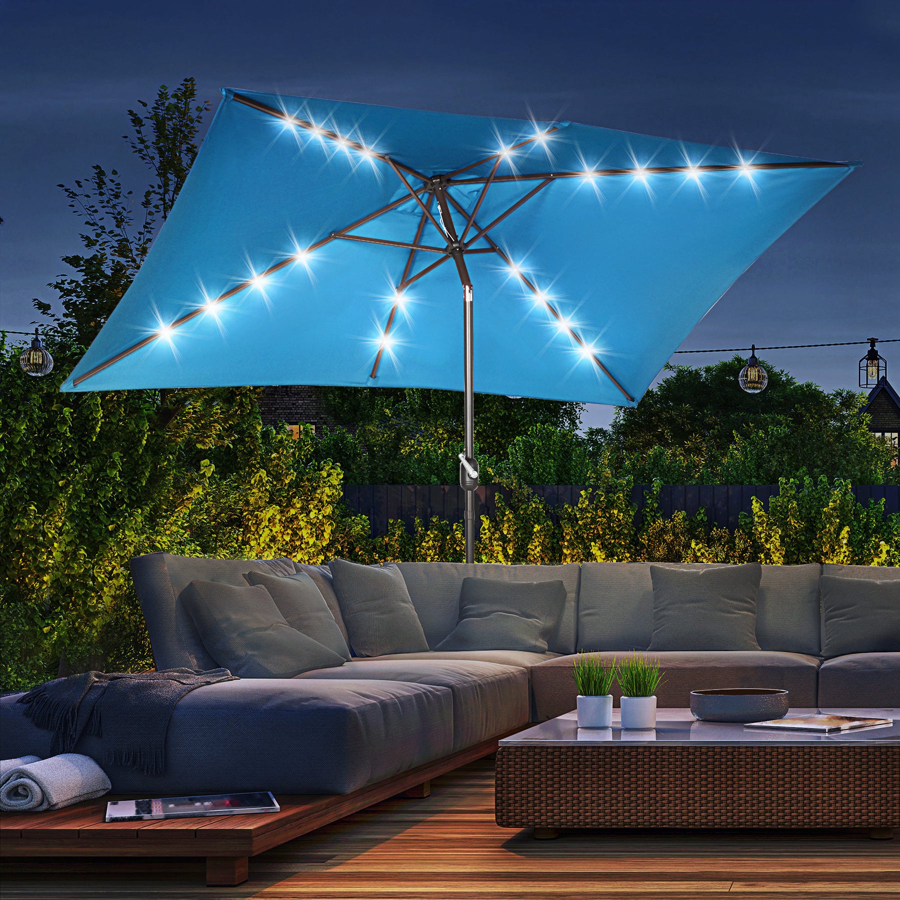 Our Outsunny patio umbrella with solar lights is an excellent answer for a bright sunny day as well as star night! The large outdoor umbrella will serve to protect you from the UV rays and lights up the night with its 20 solar-powered LED lights. Constructed with a high-grade polyester fabric shade and a heavy-duty aluminum pole designed to ensure years of reliable use. With this versatile gadget, you can enjoy your time outdoor on a hot day and stay comfortable under stars light.