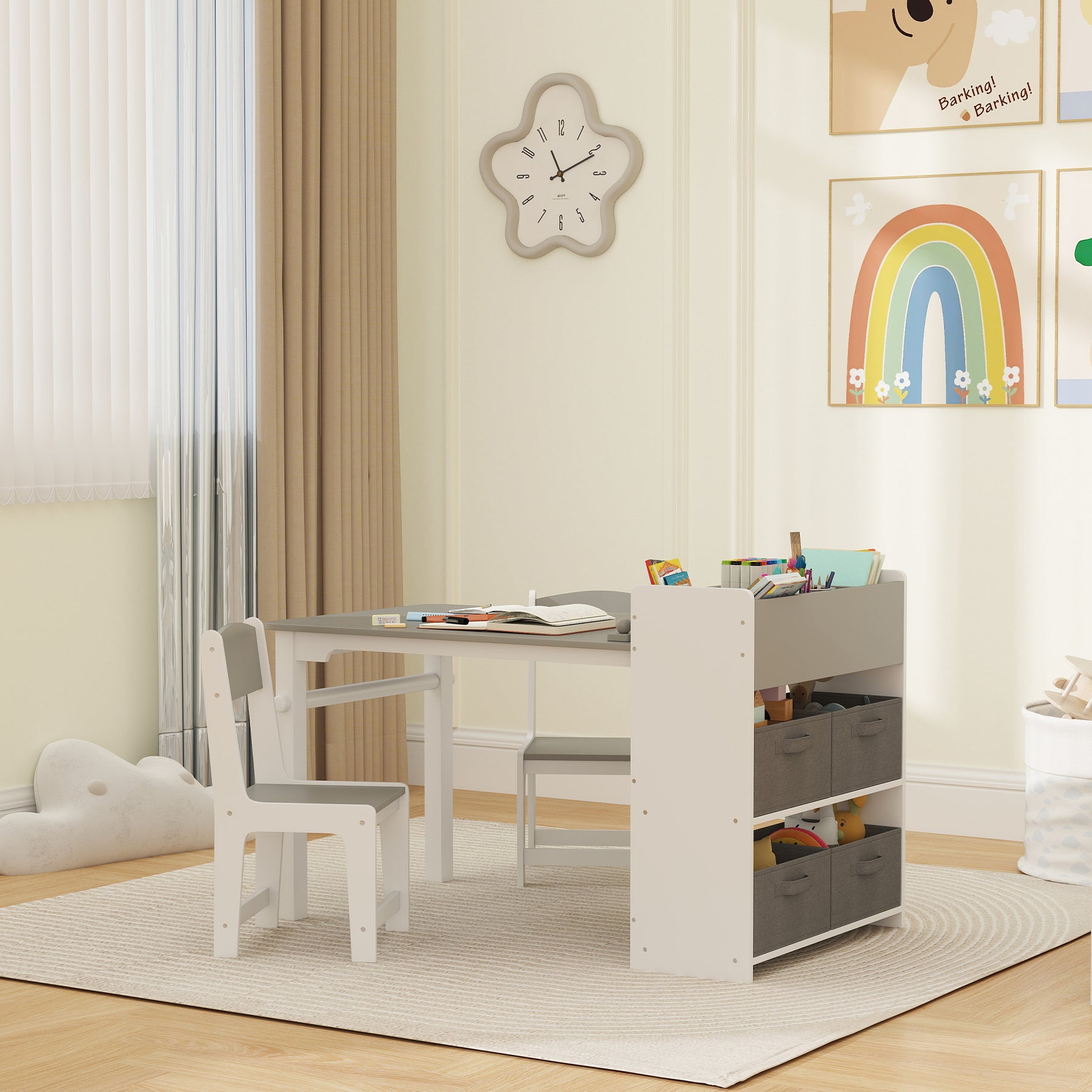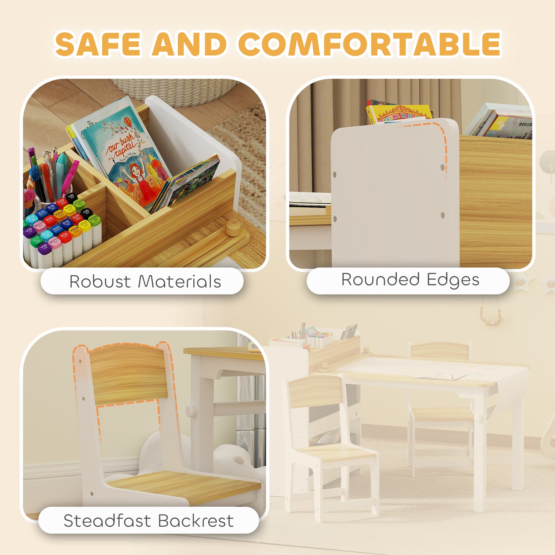 Spark creativity and fun with the Qaba Kids Table and Chair Set! Great for everything from drawing to dining, it features a built-in paper roll for endless art adventures and spacious storage to keep essentials organized. Made from solid MDF and pine wood, this childrens table and chair set makes sure a safe and comfortable space for toddlers to learn and play.