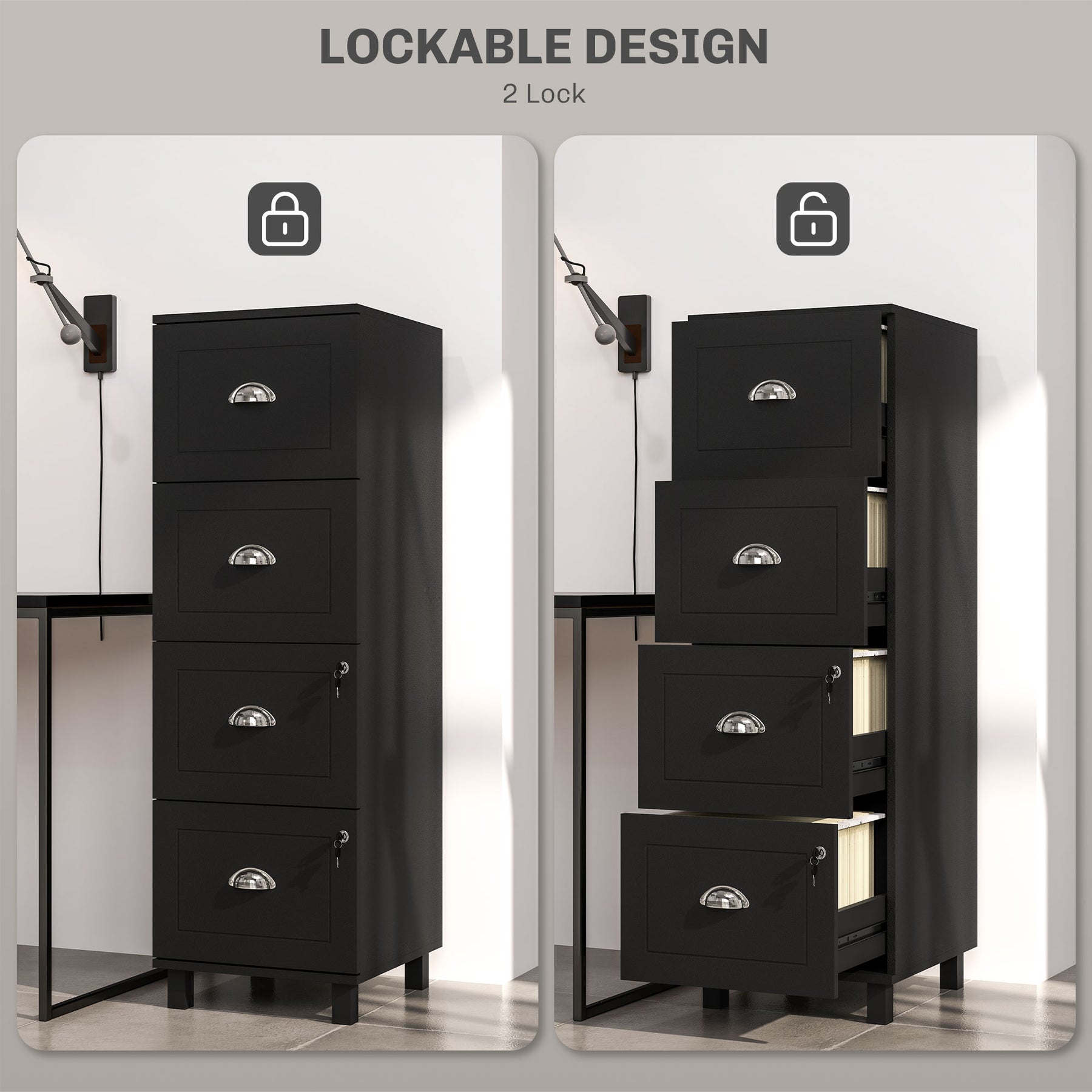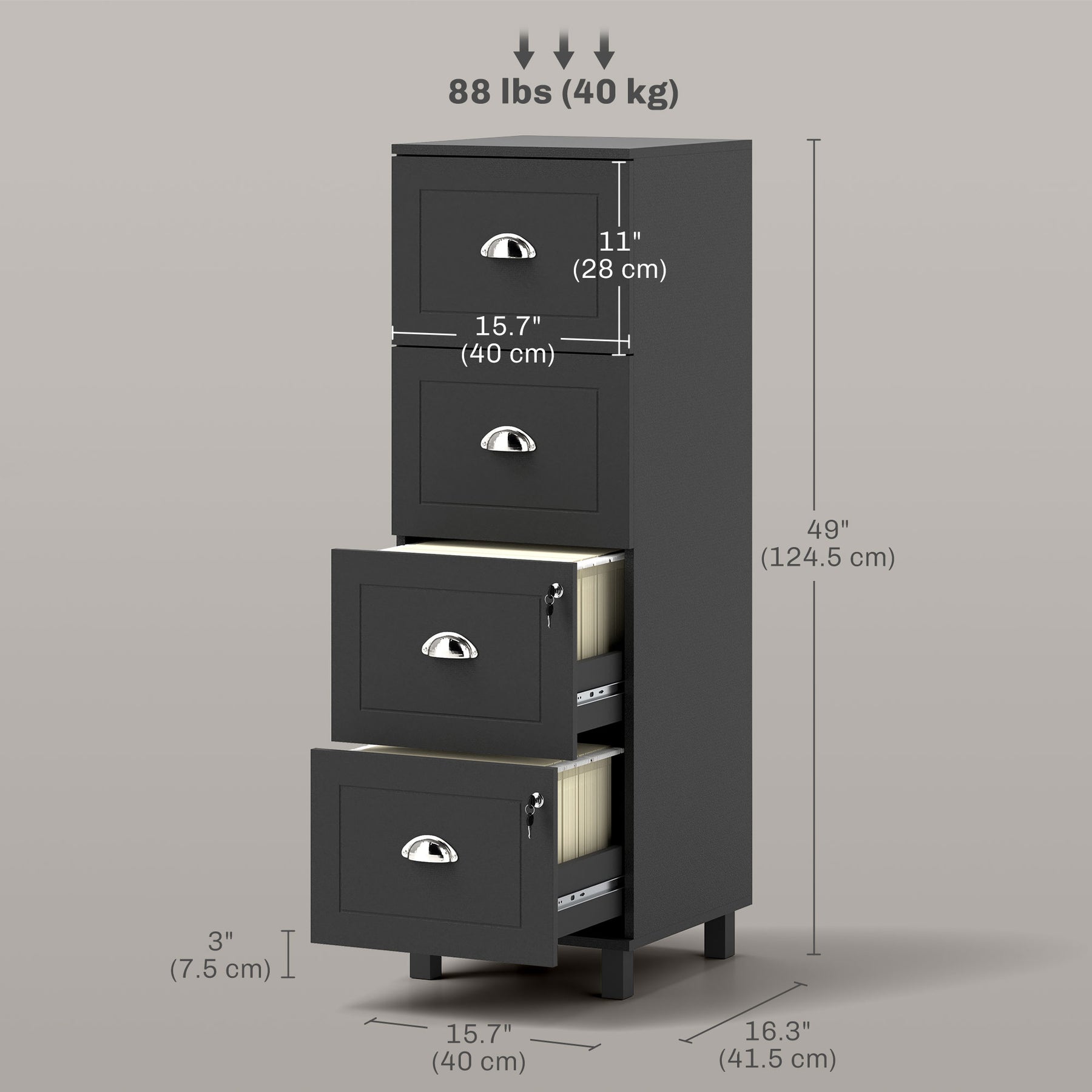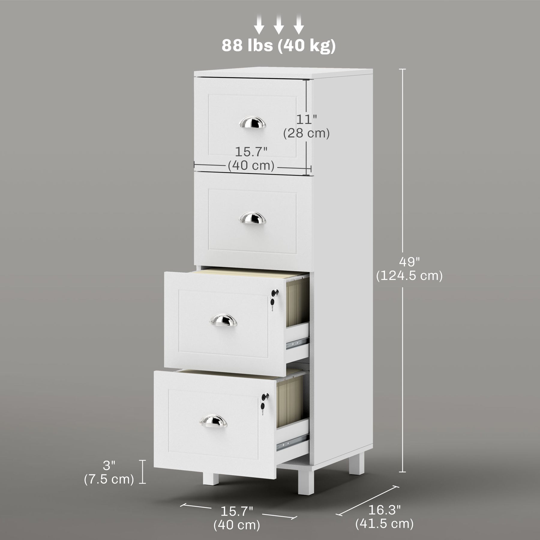 Keep your workspace tidy and stylish with the HOMCOM File Cabinet. This modern cabinet features 4 drawers, adjustable bars for A4 and letter-sized files, and 2 lockable drawers for secure storage. Designed with an anti-tipping mechanism and sleek lines, it merges safety with a chic look, making it a brilliant addition to any office. With its large capacity, secure storage, quality materials, and contemporary style, this filing cabinet is a must-have for any office.