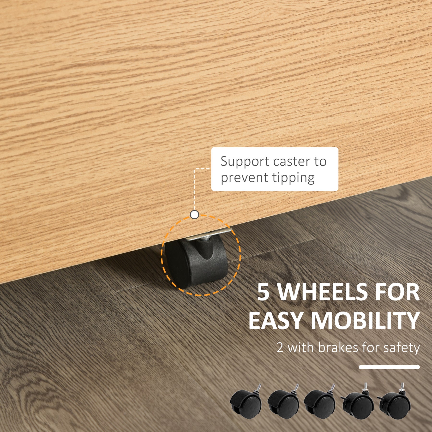 - • 5 universal wheels with 2 lockable and 1 anti-tipping for safety