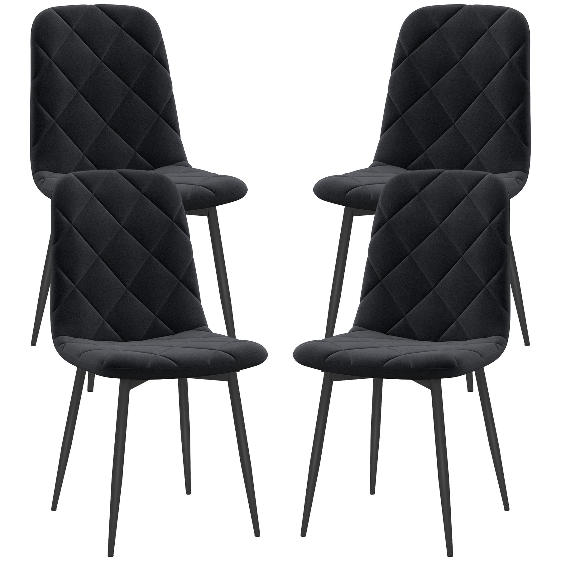 Transform your dining experience with the HOMCOM dining chairs, blends comfort with charm. Indulge in the luxurious, soft velvet feel fabric and enjoy the support of a solid back and padded seat. These dining room chairs feature a solid structure with a powder-coated steel frame, with protective foot pads to ensure your floors stay scratch-free. These side chairs suit for any room, their modern tufting and clean lines add a touch of elegance.