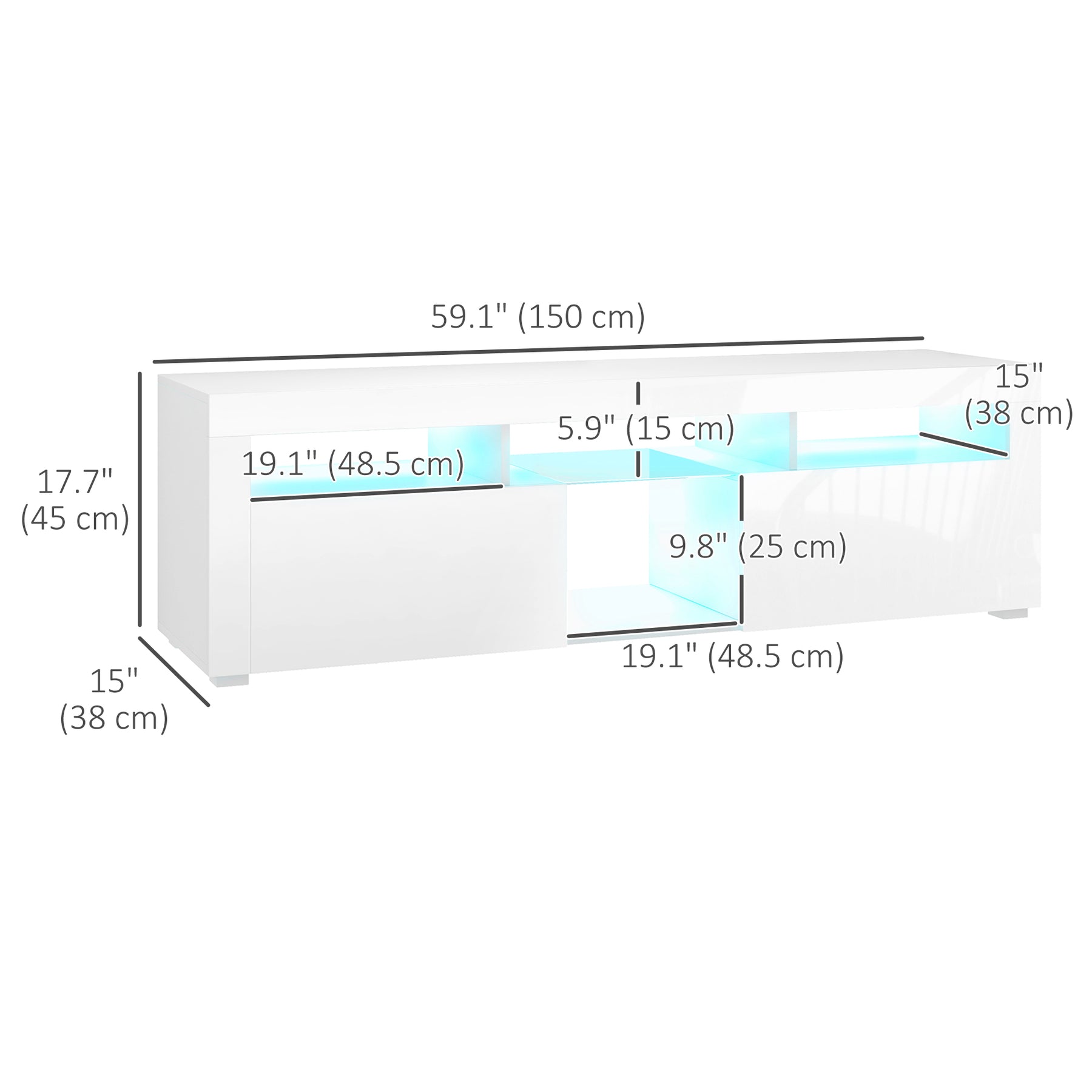 Take TV stand with storage from HOMCOM to make your home fashionable! This media unit with clean lines and high glossy white colour decorates any home style. 16 lighting colours with 16 brightness levels and 4 lighting modes add more exciting elements to your life. Open compartments and cabinets make your home cleaner. HOMCOM entertainment unit is a wonderful gathering piece for your living space!