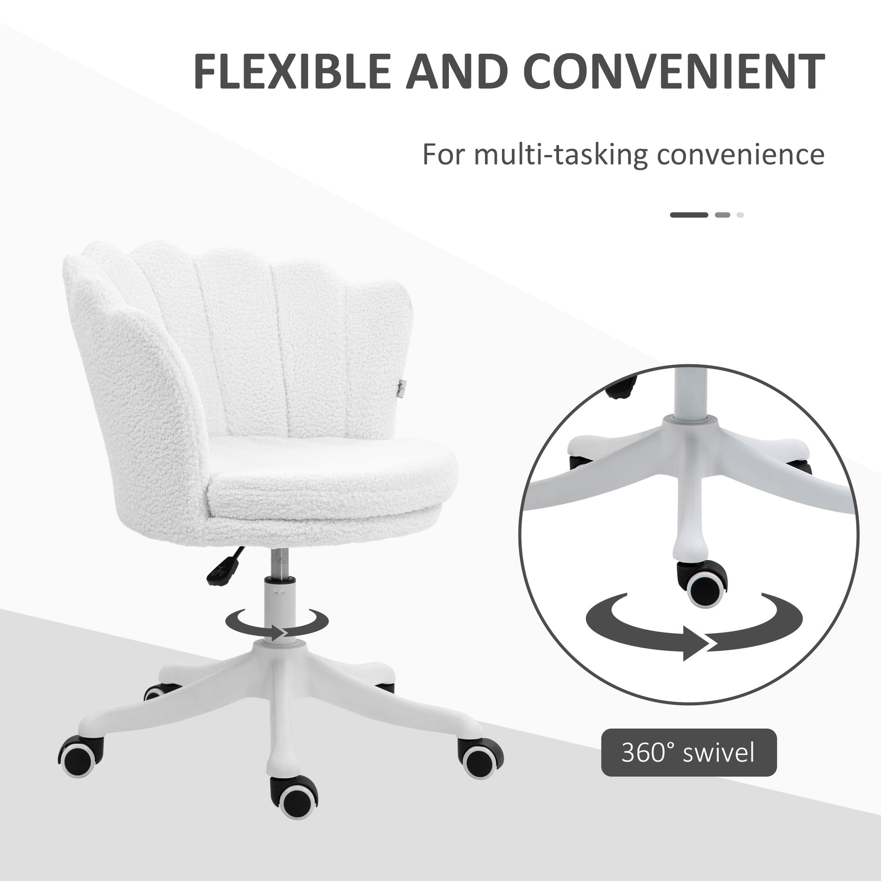 Choose this swivel chair from HOMCOM for your relaxation or working time. You can place it in your room. Featuring a curved line design with thick padding and soft fabric, the computer desk chair provides extra comfort for long-period use. You can adjust the seat height to get a better sitting experience. You can quickly move with its swivel wheels and high-end gas lift. Bring style and comfort to your living space with this work chair.